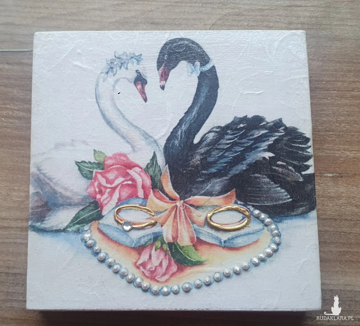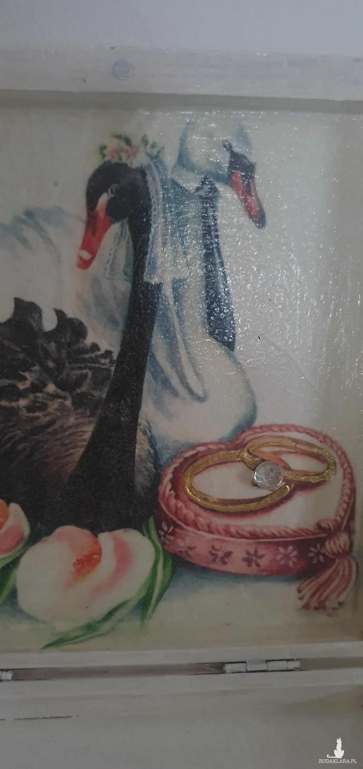 Starannie wykonane, metodą decoupage, przyozdobione perełkami. Jest jedyne w swoim rodzaju, unikatowe