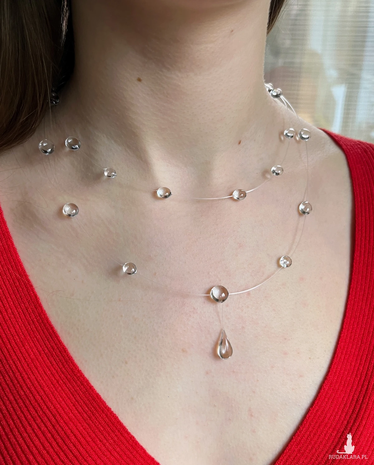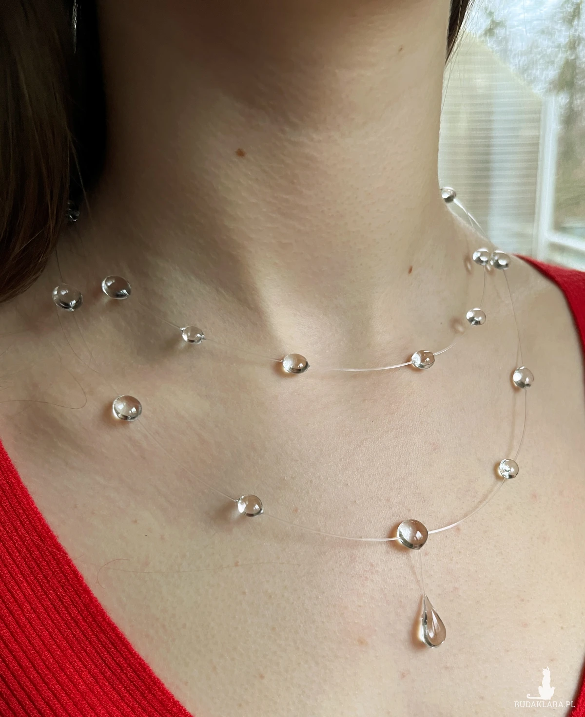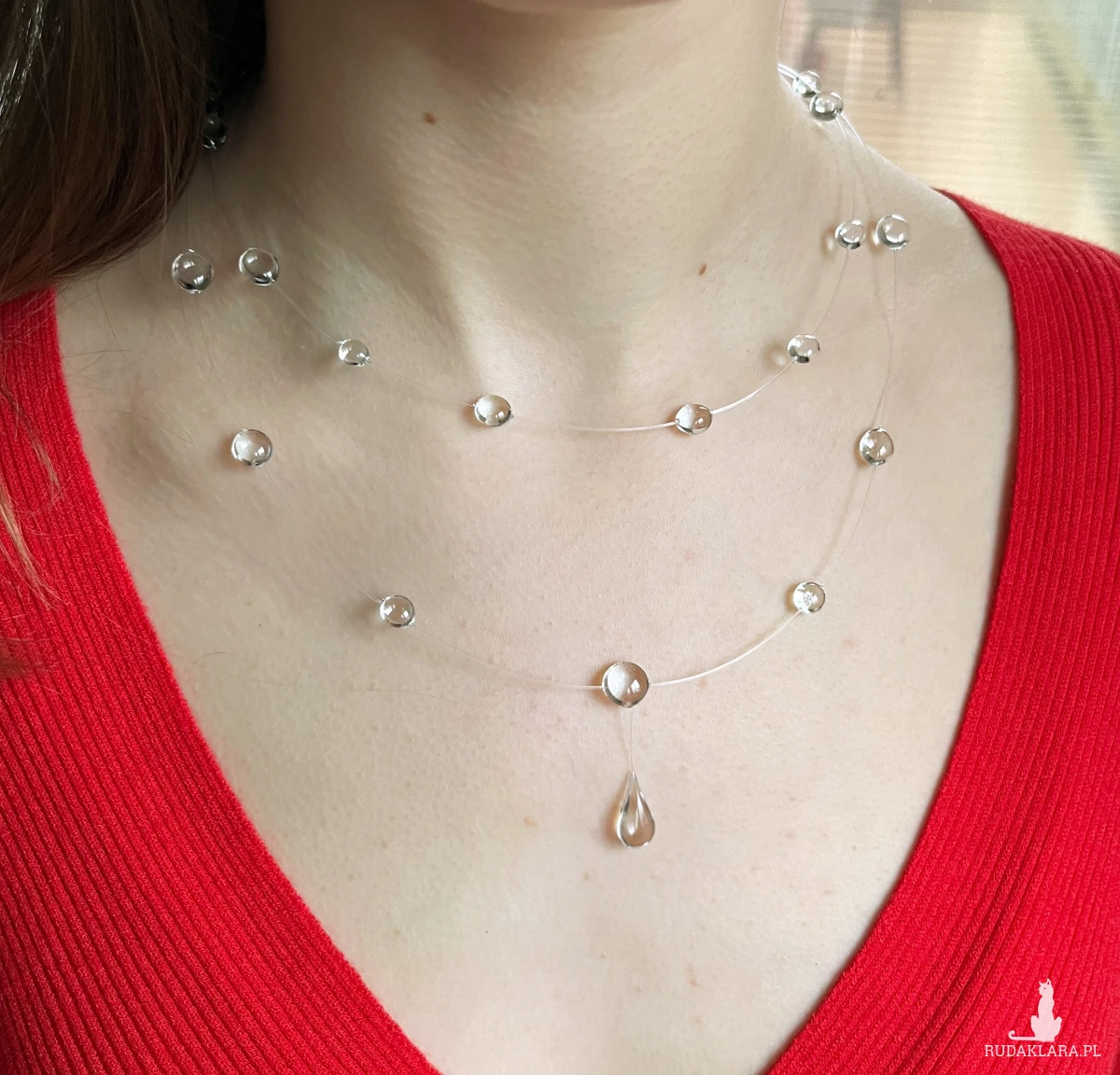 Naszyjnik z żywicy epoksydowej imitujący "krople wody" delikatny i kobiecy jak poranna rosa...dodaje subtelności i kobiecego uroku, ubierając go nie przejdziesz niezauważona :)
