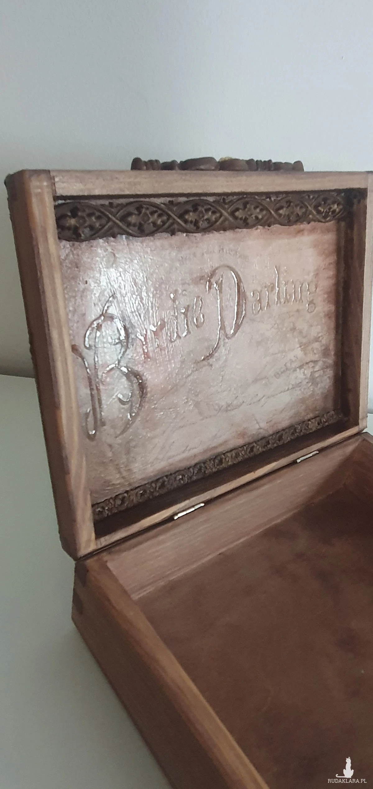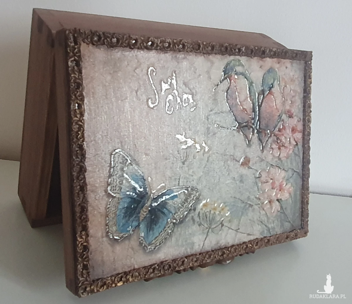 Wykonana metodą decoupage z ogromną dbałością o szczegóły