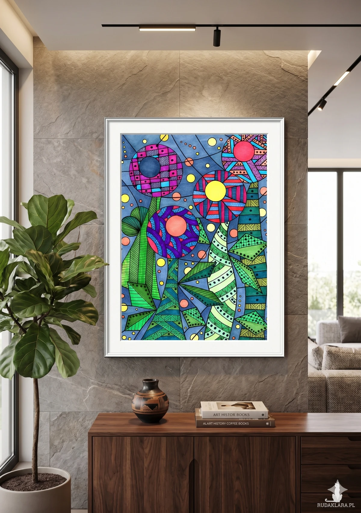 Wydruk autorskiego rysunku na satynowym papierze o gramaturze 200g/m2 - sprzedawany bez ramki - rysunki w ramkach na zdjęciach to wizualizacje.