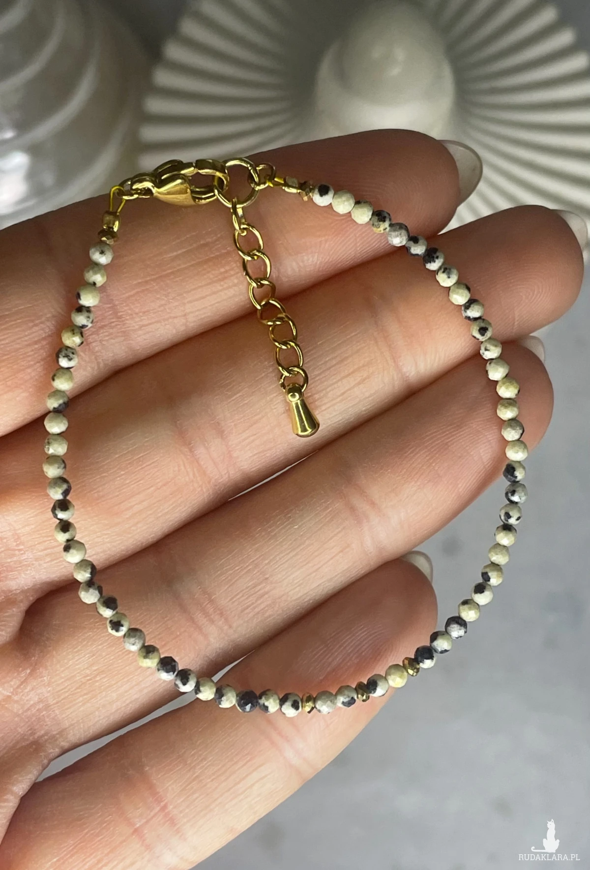 Bransoletka wykonana ręcznie z kamieni naturalnych Jaspisu Dalmatyńskiego✨