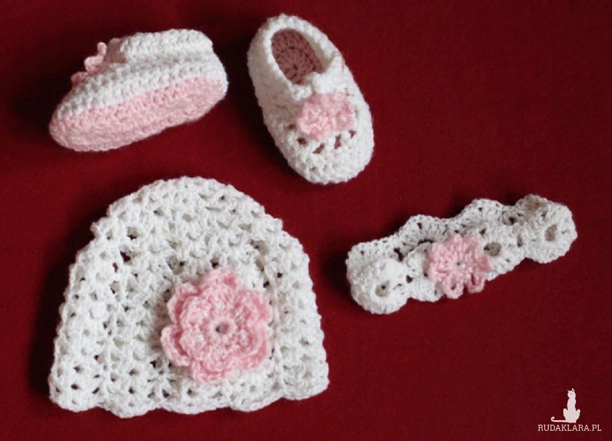 cm), obwód pod paszkami - 45 cm; czapeczka i opaska - 36 cm; buciki -