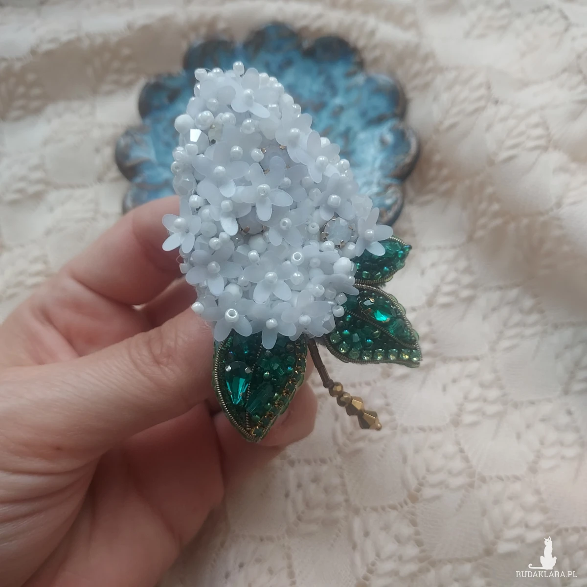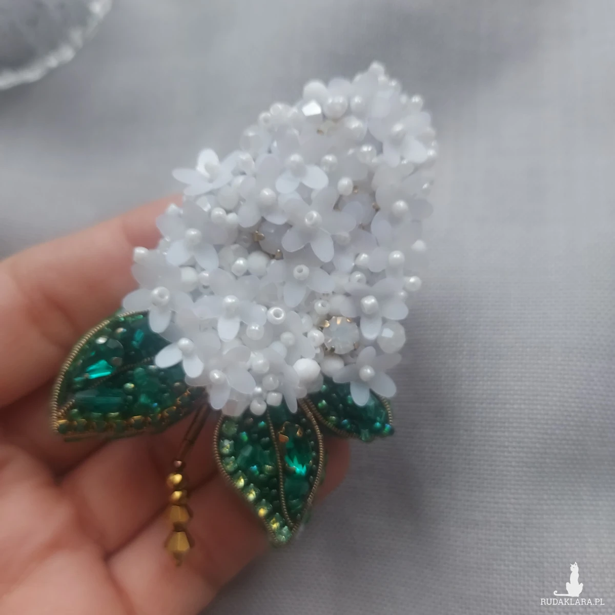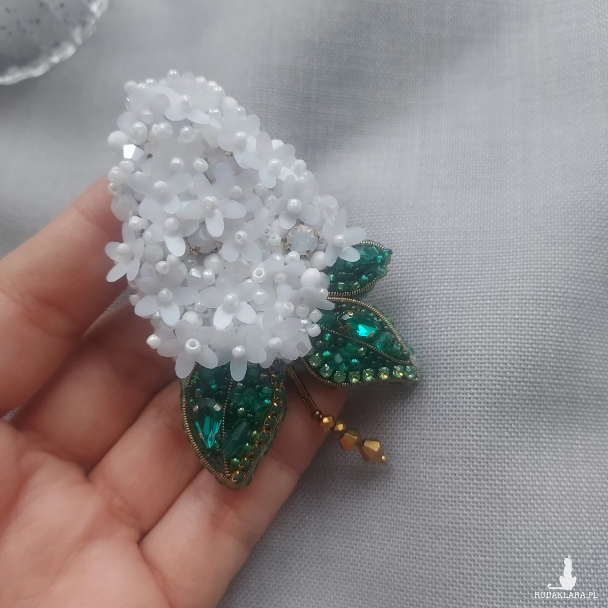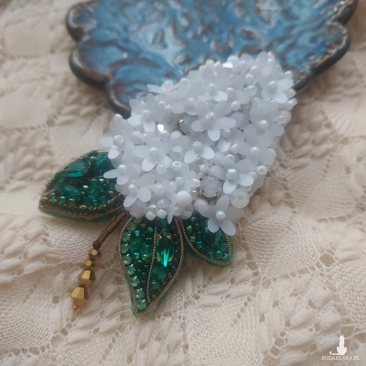 Przedstawiam nowy projekt wiosennej, wyjątkowej broszki BIAŁY BEZ. Powstał z pasji techniką haftu koralikowego z dbałością o każdy detal.