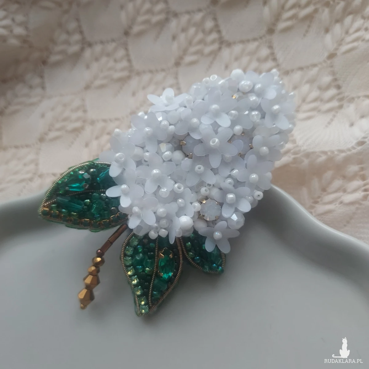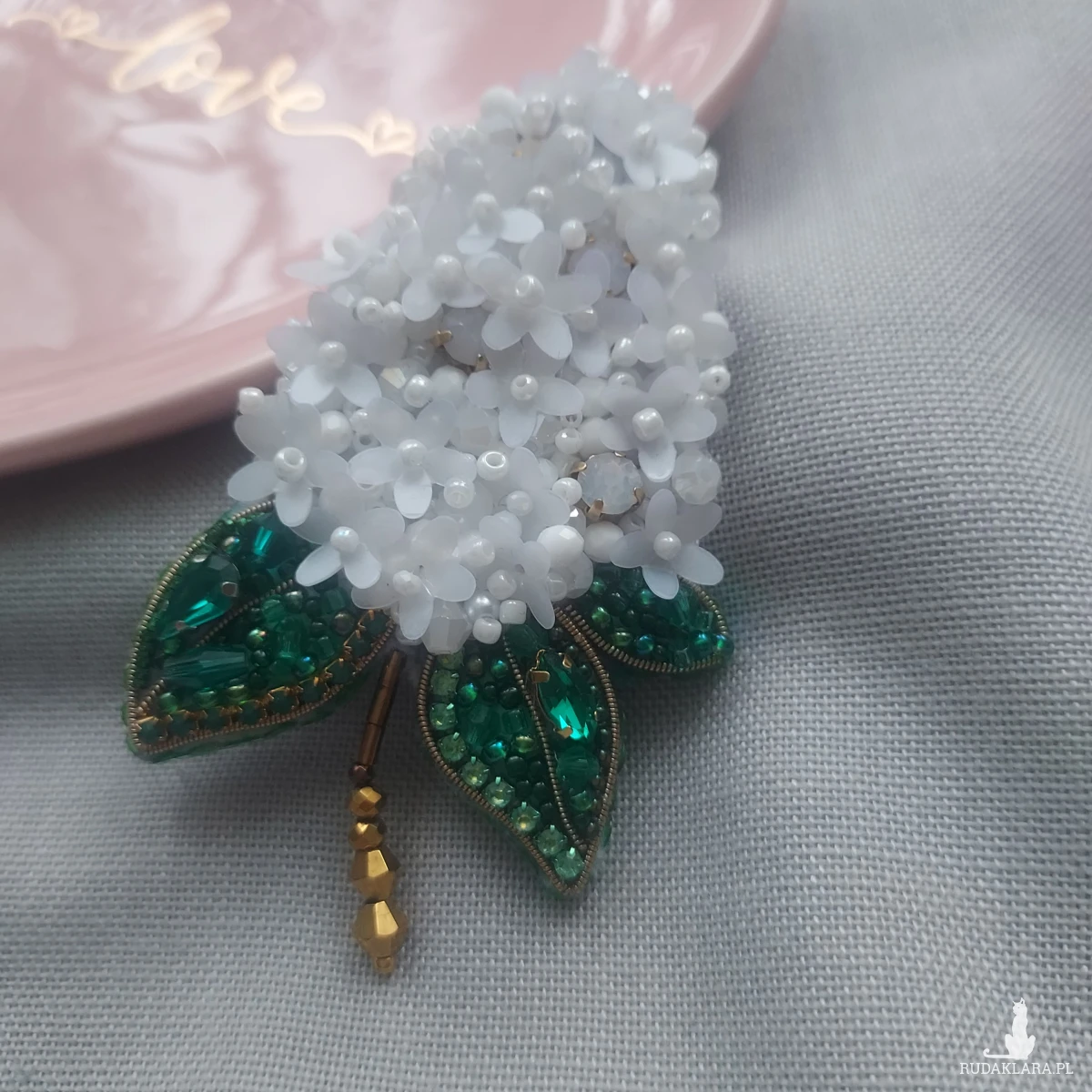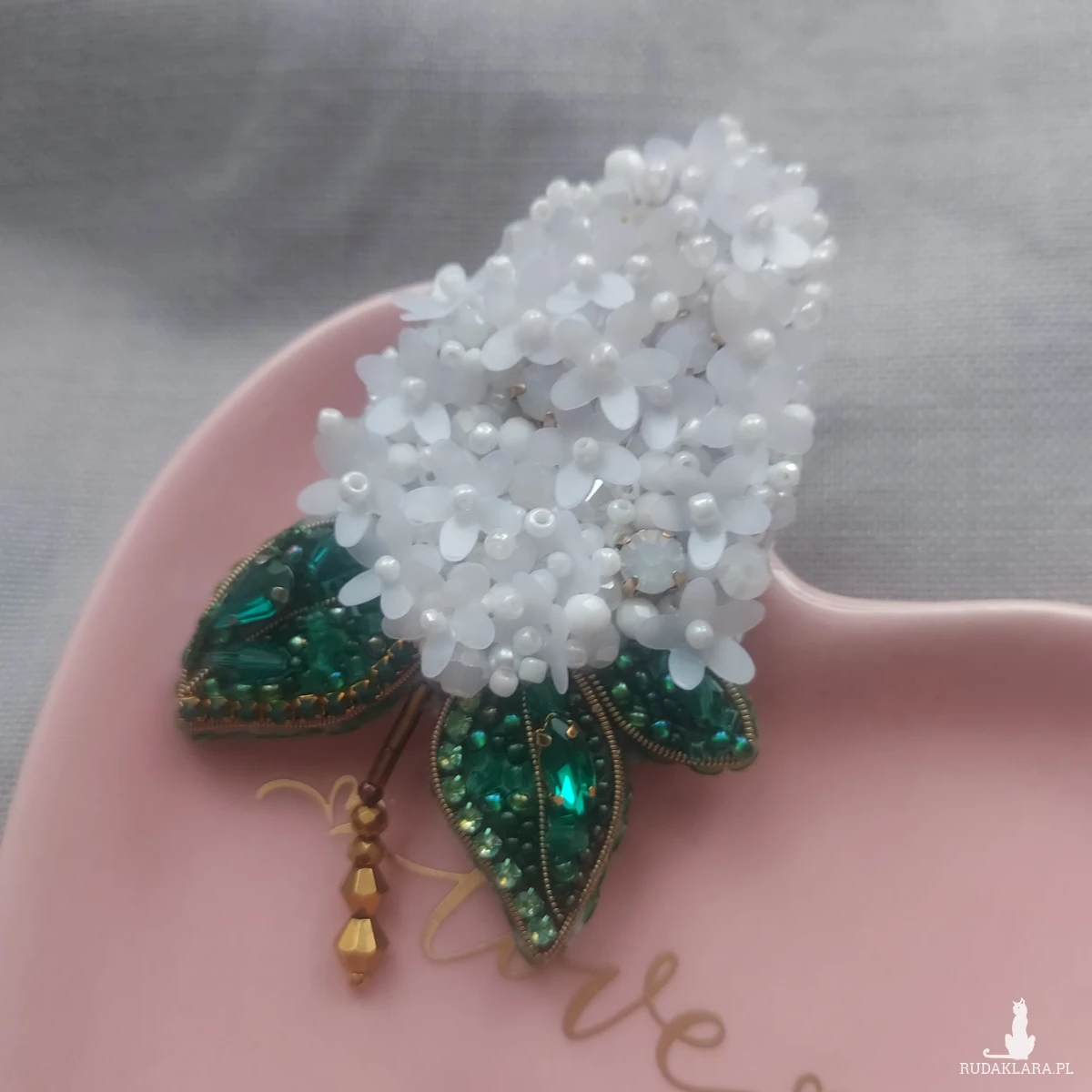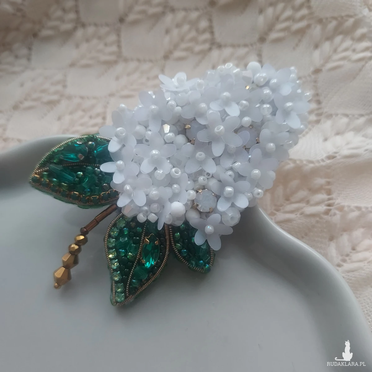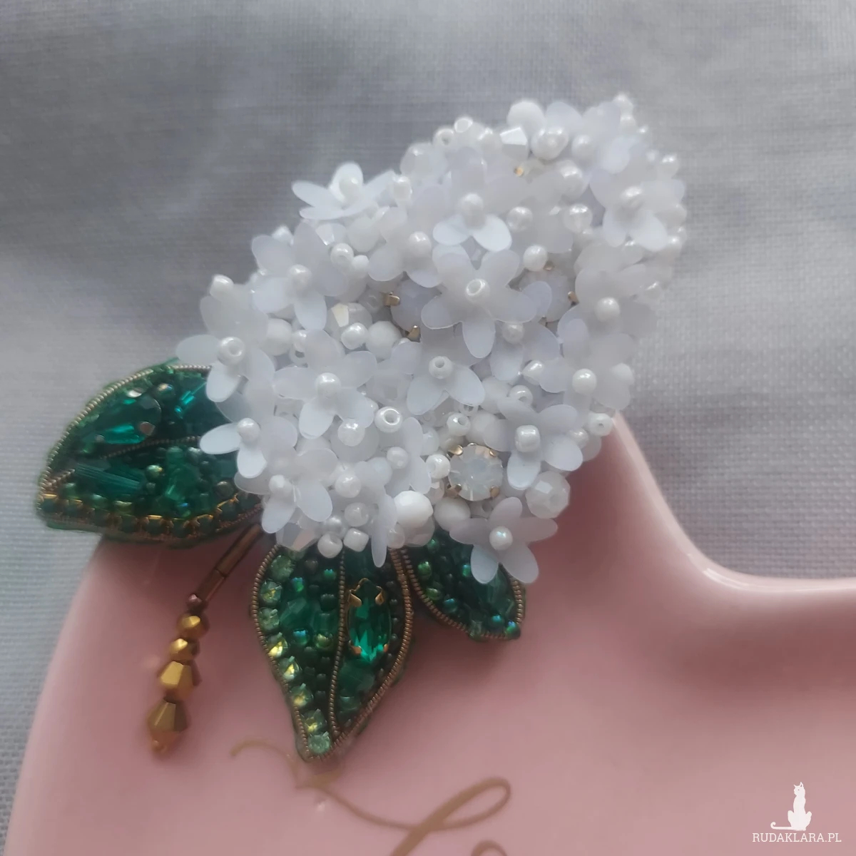 Przedstawiam nowy projekt wiosennej, wyjątkowej broszki BIAŁY BEZ. Powstał z pasji techniką haftu koralikowego z dbałością o każdy detal.