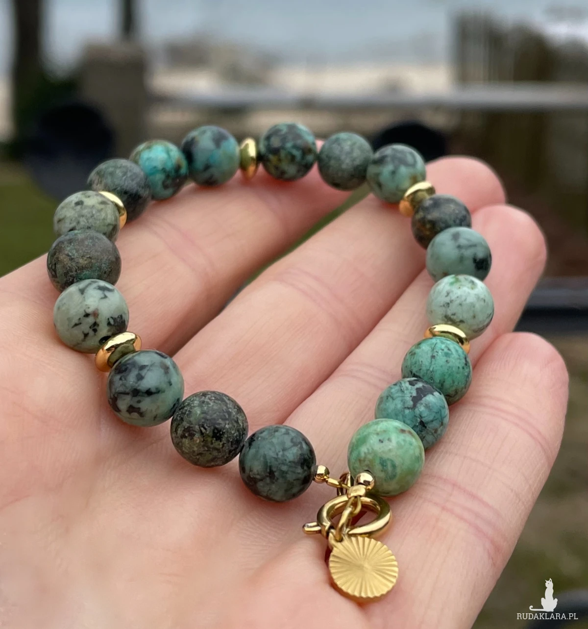 Bransoletka wykonana ręcznie z kamieni naturalnych TURKUSU AFRYKAŃSKIEGO🌿