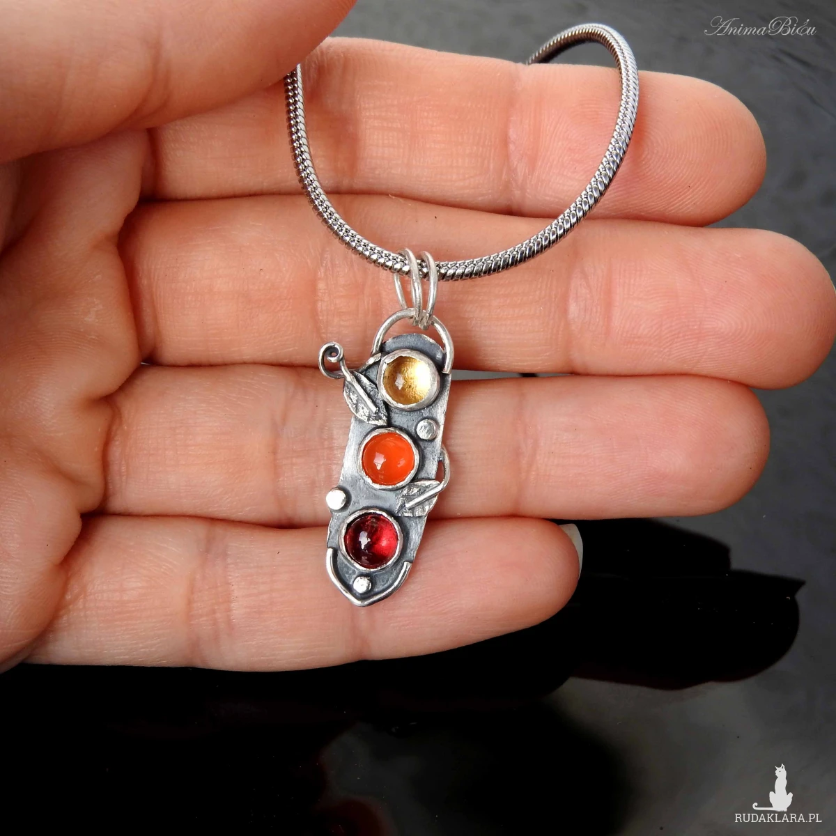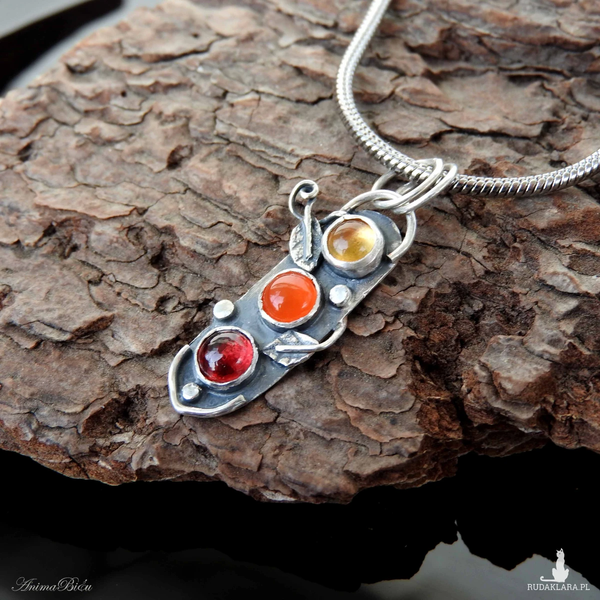 Umieściłam w nim minerały w ciepłej tonacji - cytryn, karneol i granat i