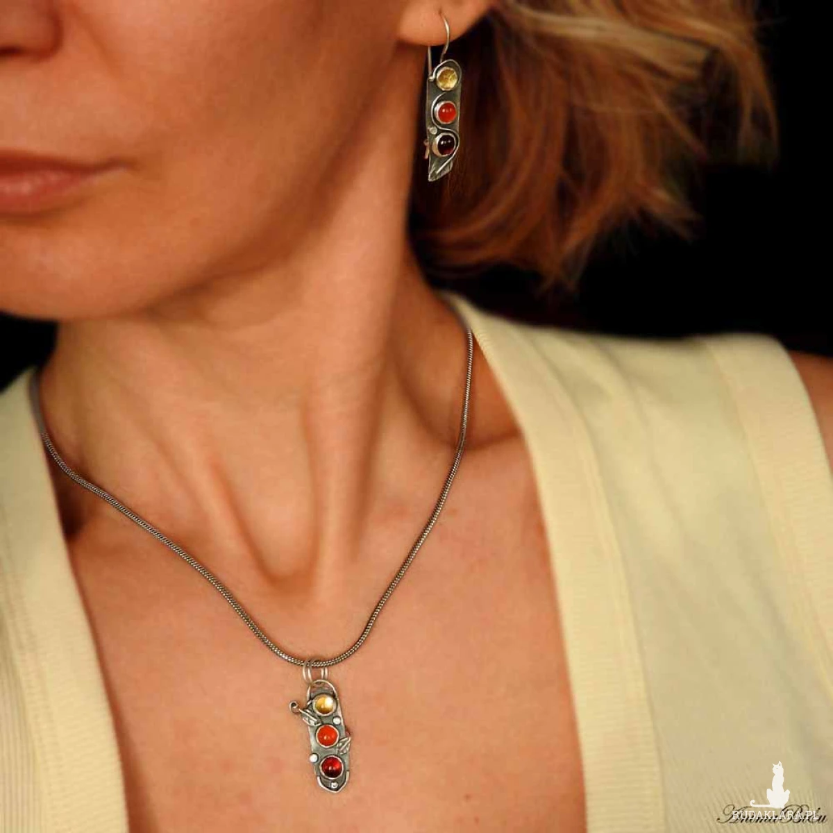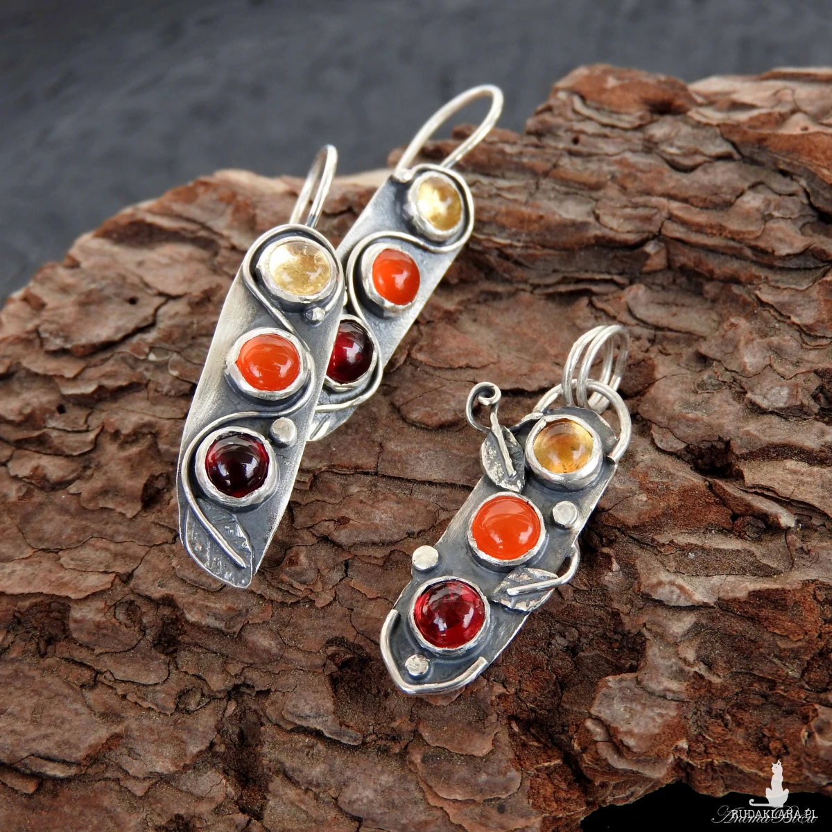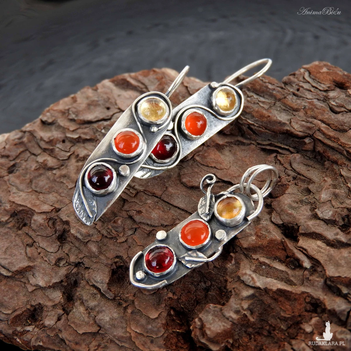 Komplet srebrny z minerałami. Ten komplet, na który składają
