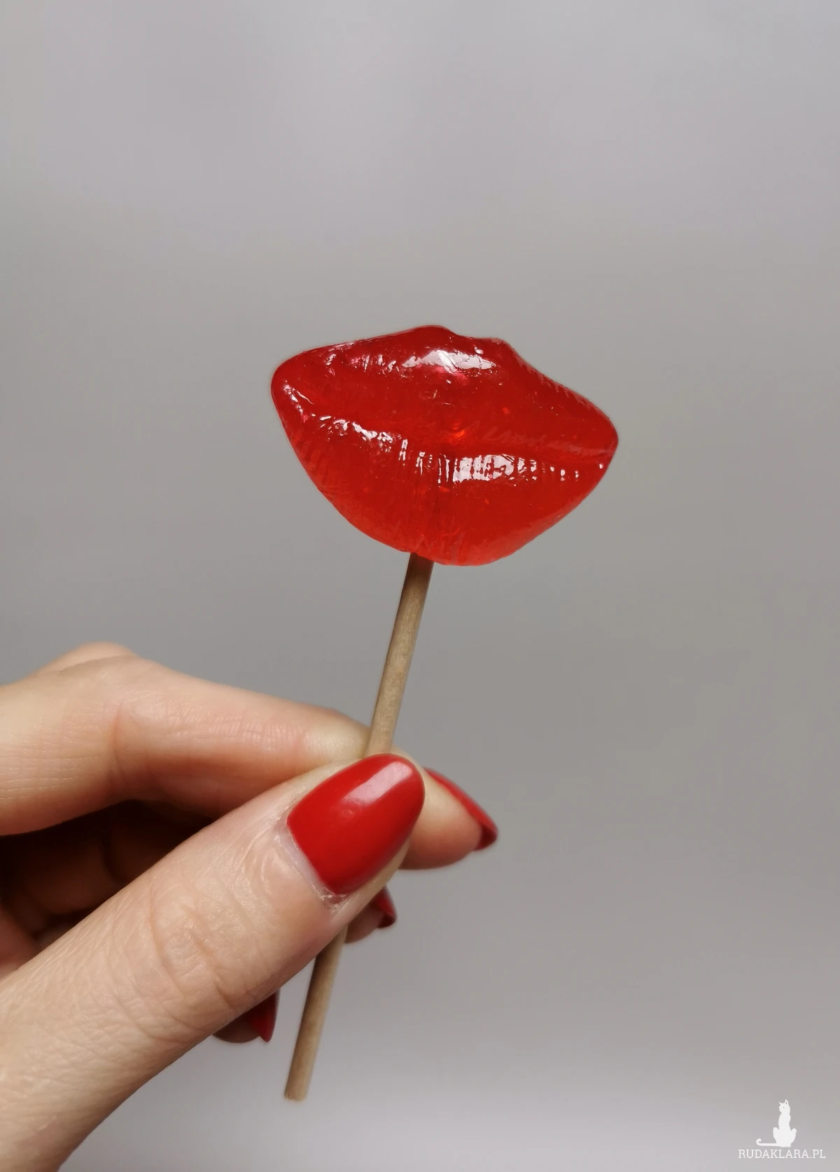 Ręcznie wykonany lizak w kształcie czerwonych ust