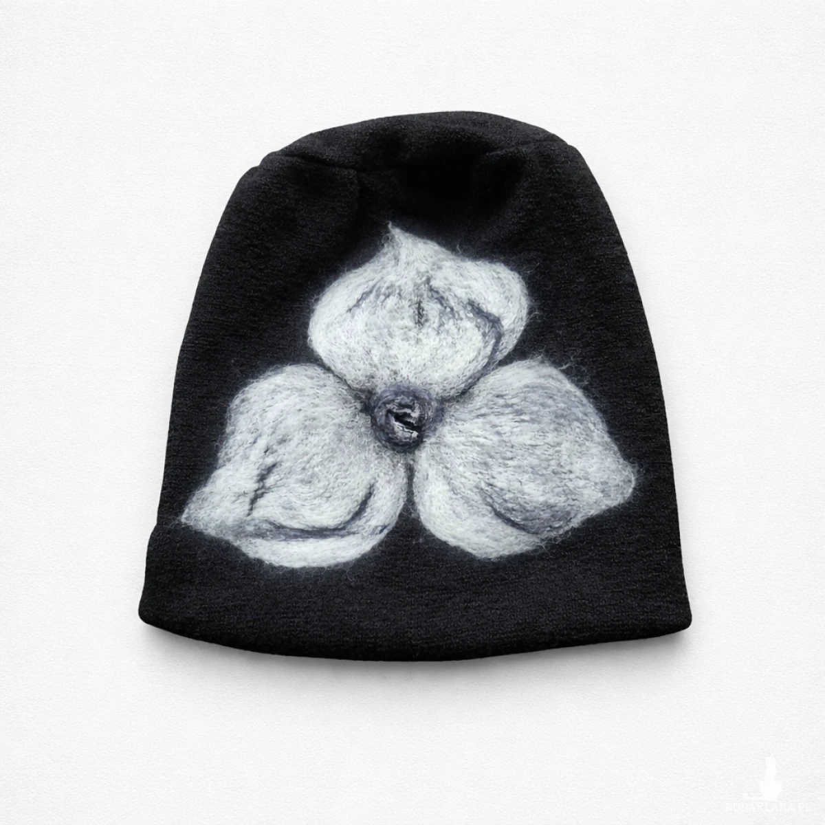 czapka wełniana filcowana zimowa czarna handmade w kwiaty na podszewce-- rozmiar uniwersalny, wełniana, filcowana wełną merynosów, bardzo ciepła, fantastyczna, miła, miękko układa się na głowie, niesamowicie zwraca uwagę, doskonałą na codzienne noszenie jak i na prezent, zawsze możesz ją założyć po basenie i przeżyjesz,box e1