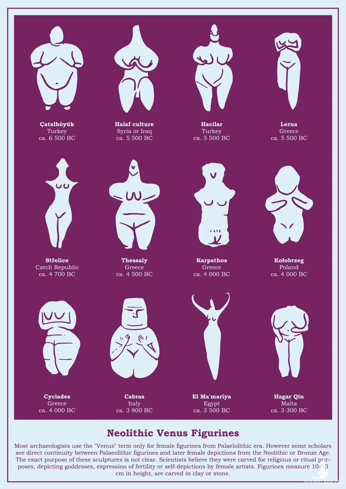 Figurki Wenus z epoki neolitu. Ilustracja wykonana cyfrowo.