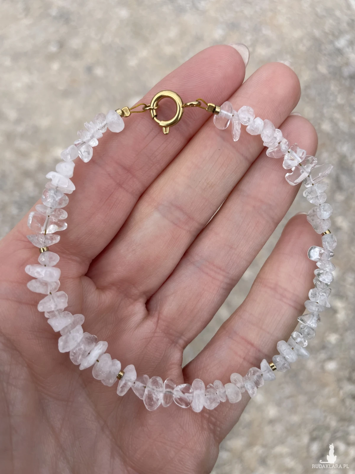 Ręcznie wykonana bransoletka z kamieni naturalnych kryształu górskiego z dodatkiem złotego hematytu.