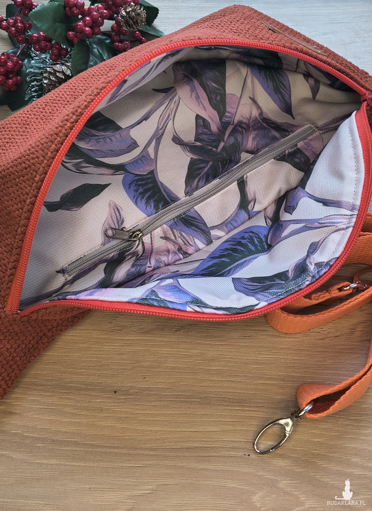 W środku znajduje się również praktyczna kieszonka na suwak, idealna na najważniejsze drobiazgi.