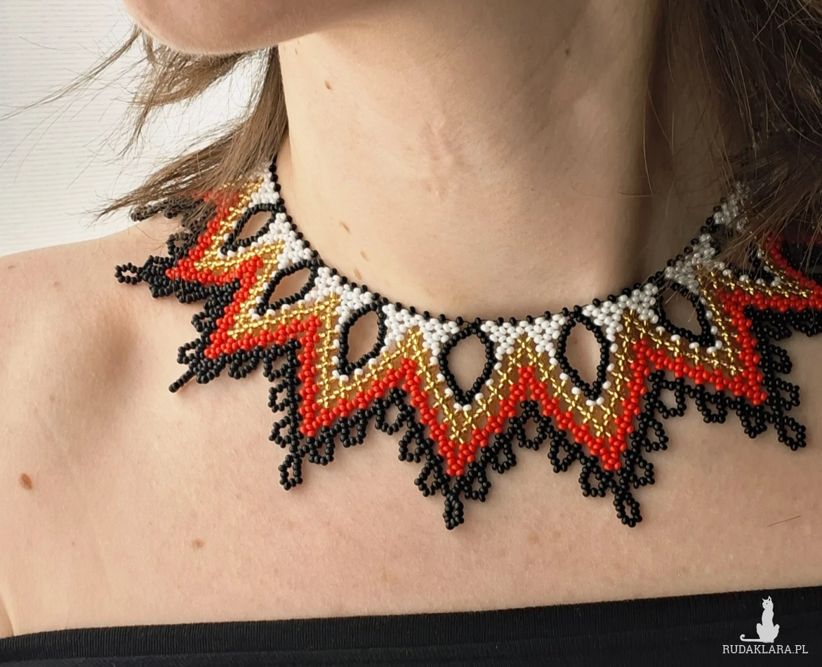 1. Codzienna pielęgnacja i użytkowanie Unikaj kontaktu z chemikaliami: Zawsze zdejmuj biżuterię przed użyciem perfum, lakieru do włosów, balsamów, kremów, a także środków czyszczących. Chroń przed wilgocią: Unikaj noszenia biżuterii podczas kąpieli, prysznica, pływania (w basenie czy morzu) lub podczas intensywnego wysiłku fizycznego, który powoduje pocenie się. Ostatni element garderoby: Zakładaj biżuterię jako ostatni element stroju, po nałożeniu makijażu i kosmetyków, a zdejmuj jako pierwszy. Unikaj ekstremalnych temperatur: Długotrwała ekspozycja na bezpośrednie światło słoneczne lub silne źródła ciepła (np. kaloryfer) może powodować blaknięcie kolorów lub pękanie niektórych koralików. Czyszczenie Delikatne mycie: Biżuterię z koralików (zwłaszcza naturalnych) najlepiej czyścić miękką, lekko wilgotną ściereczką lub w letniej wodzie z użyciem łagodnego mydła (bez fosforanów). Dokładne osuszanie: Po umyciu biżuterię należy natychmiast i dokładnie osuszyć miękką szmatką, aby zapobiec uszkodzeniu nici lub metalowych elementów. Unikaj silnych środków: Nie używaj silnych detergentów, past do zębów ani chemicznych środków do czyszczenia biżuterii, które mogą uszkodzić delikatne koraliki. Przechowywanie Suche i zamknięte miejsce: Przechowuj biżuterię w suchym, zamkniętym pojemniku, szkatułce wyściełanej miękkim materiałem lub w małym woreczku z tkaniny, aby ograniczyć dostęp powietrza, kurzu i wilgoci. Unikaj plątania: Długie naszyjniki lub bransoletki najlepiej przechowywać w pozycji wiszącej na specjalnym stojaku lub wieszaczku, co zapobiegnie ich splątaniu i uszkodzeniu. Oddzielne przegródki: Unikaj przechowywania różnych rodzajów biżuterii razem, aby zapobiec zarysowaniom i wzajemnemu uszkodzeniu przez twardsze elementy. 2. Nie przeznaczony dla dzieci poniżej 3 roku życia. 3. Kolor na zdjęciu może się trochę różnić od rzeczywistości.
