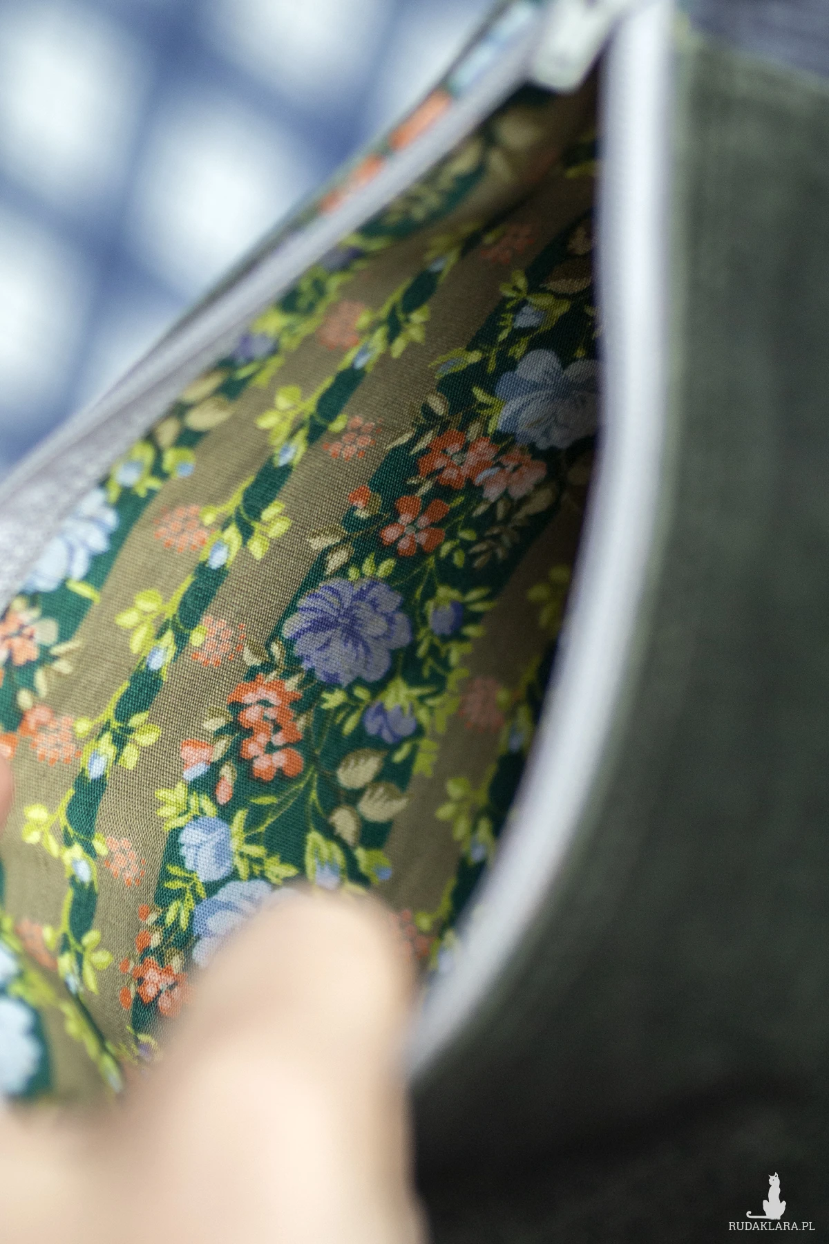 Kosmetyczka jest zapinana na suwak, w środku bawełniana podszewka.
