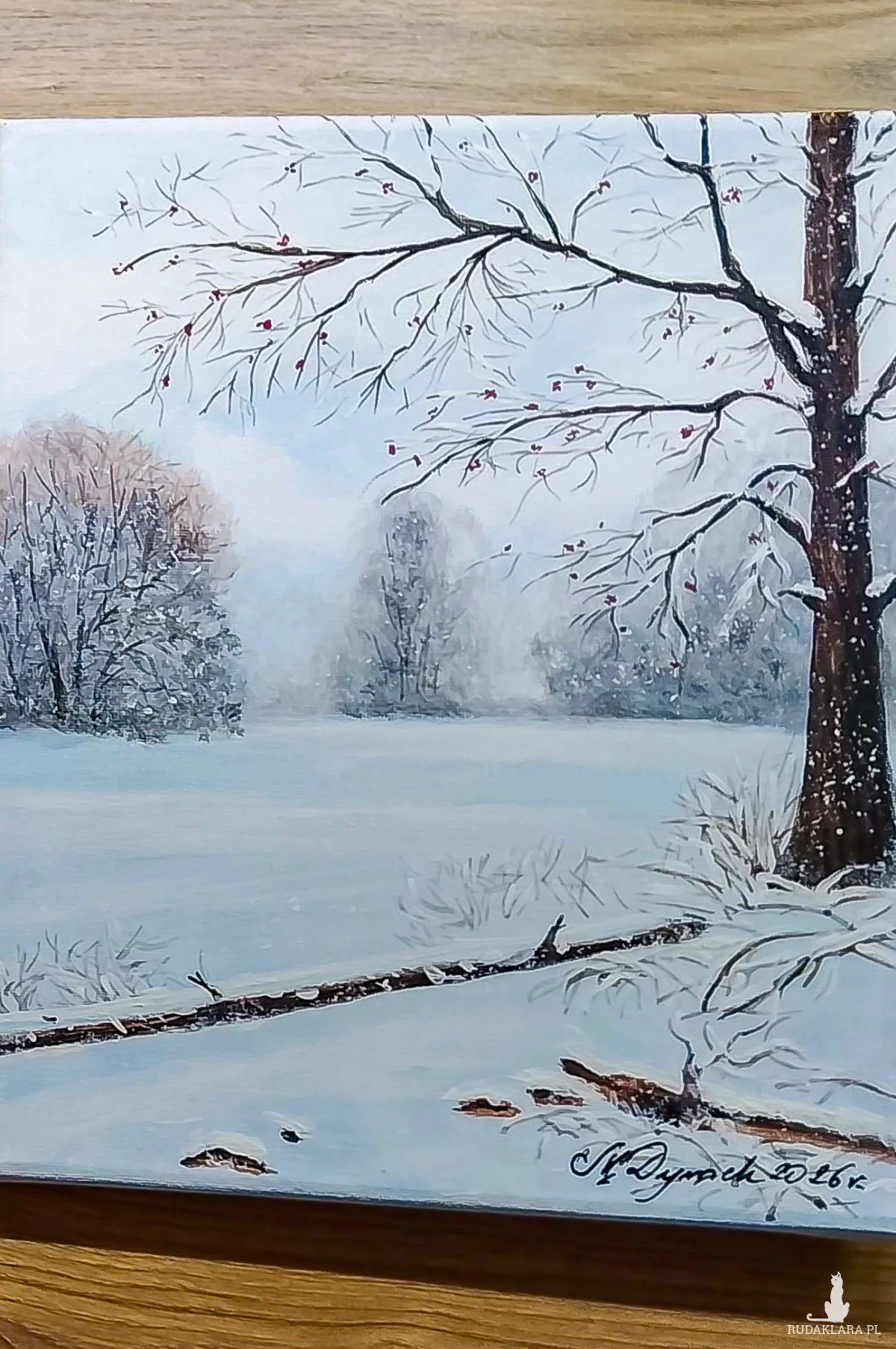- Tematyka: Klasyczny pejzaż zimowy w nowoczesnym wydaniu. Surowe piękno natury uśpione pod śniegiem