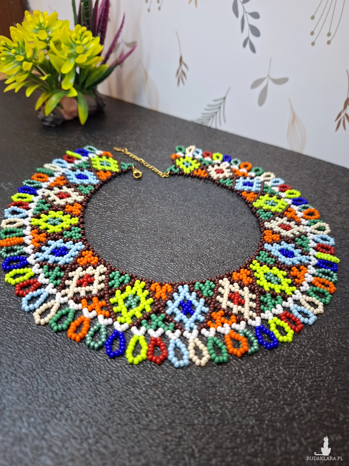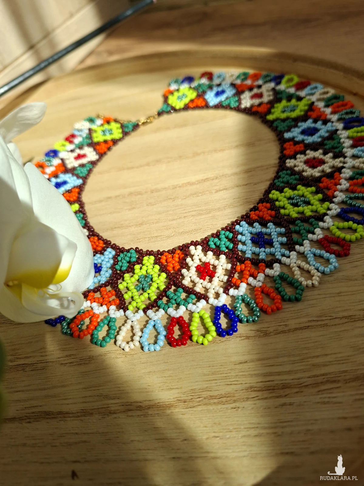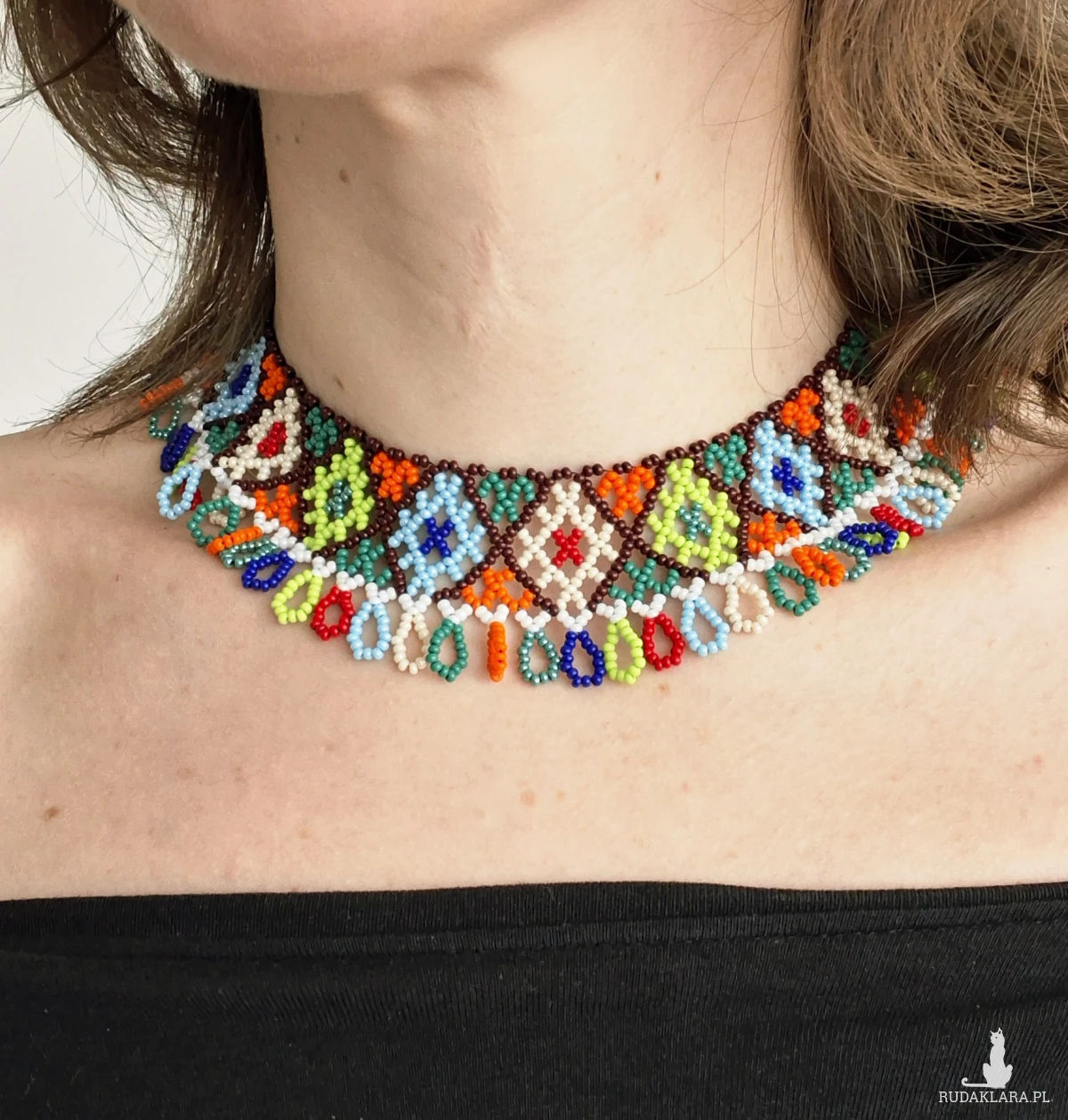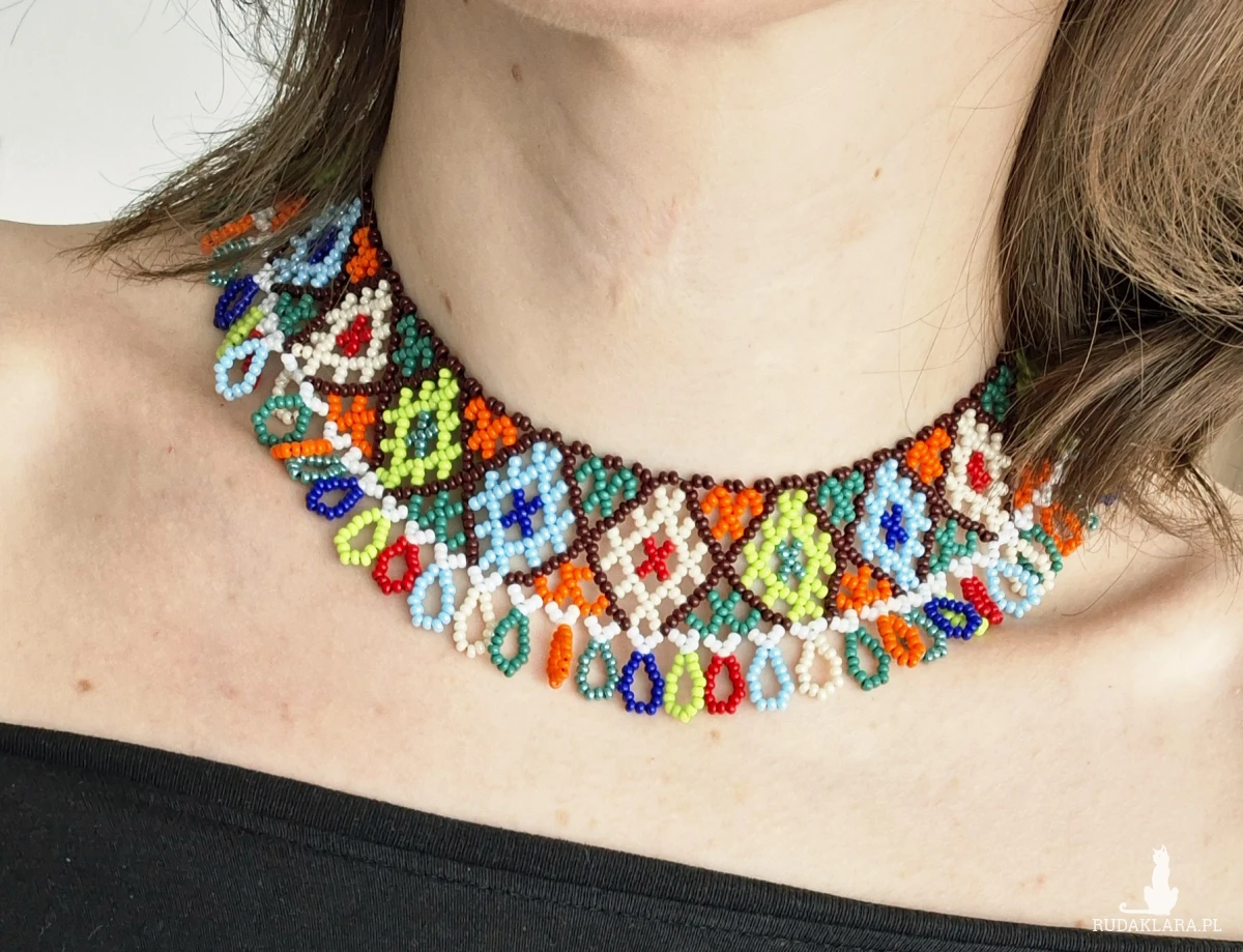 1. Codzienna pielęgnacja i użytkowanie Unikaj kontaktu z chemikaliami: Zawsze zdejmuj biżuterię przed użyciem perfum, lakieru do włosów, balsamów, kremów, a także środków czyszczących. Chroń przed wilgocią: Unikaj noszenia biżuterii podczas kąpieli, prysznica, pływania (w basenie czy morzu) lub podczas intensywnego wysiłku fizycznego, który powoduje pocenie się. Ostatni element garderoby: Zakładaj biżuterię jako ostatni element stroju, po nałożeniu makijażu i kosmetyków, a zdejmuj jako pierwszy. Unikaj ekstremalnych temperatur: Długotrwała ekspozycja na bezpośrednie światło słoneczne lub silne źródła ciepła (np. kaloryfer) może powodować blaknięcie kolorów lub pękanie niektórych koralików. Czyszczenie Delikatne mycie: Biżuterię z koralików (zwłaszcza naturalnych) najlepiej czyścić miękką, lekko wilgotną ściereczką lub w letniej wodzie z użyciem łagodnego mydła (bez fosforanów). Dokładne osuszanie: Po umyciu biżuterię należy natychmiast i dokładnie osuszyć miękką szmatką, aby zapobiec uszkodzeniu nici lub metalowych elementów. Unikaj silnych środków: Nie używaj silnych detergentów, past do zębów ani chemicznych środków do czyszczenia biżuterii, które mogą uszkodzić delikatne koraliki. Przechowywanie Suche i zamknięte miejsce: Przechowuj biżuterię w suchym, zamkniętym pojemniku, szkatułce wyściełanej miękkim materiałem lub w małym woreczku z tkaniny, aby ograniczyć dostęp powietrza, kurzu i wilgoci. Unikaj plątania: Długie naszyjniki lub bransoletki najlepiej przechowywać w pozycji wiszącej na specjalnym stojaku lub wieszaczku, co zapobiegnie ich splątaniu i uszkodzeniu. Oddzielne przegródki: Unikaj przechowywania różnych rodzajów biżuterii razem, aby zapobiec zarysowaniom i wzajemnemu uszkodzeniu przez twardsze elementy. 2. Nie przeznaczony dla dzieci poniżej 3 roku życia. 3. Kolor na zdjęciu może się trochę różnić od rzeczywistości.