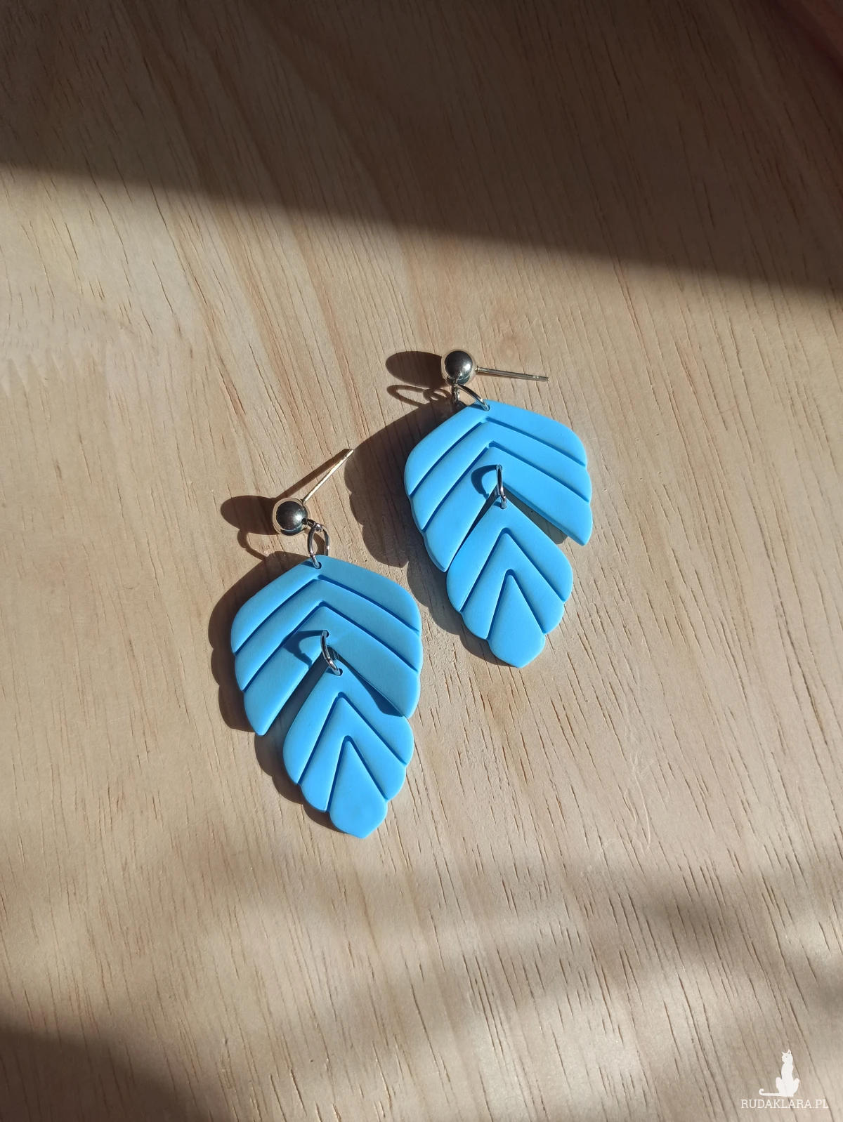 Kolczyki wiszące piórka w kolorze błękitnym.