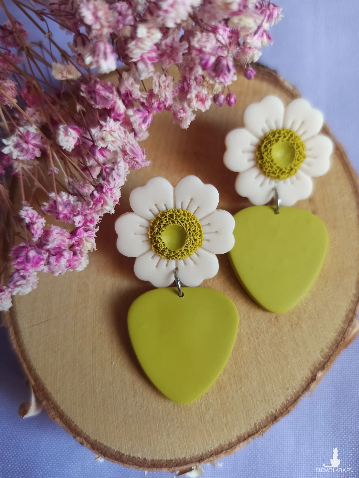 Kolczyki wykonane są z gliny polimerowej, która jest bardzo lekka. Sprawia to, że nie czuje się ich na uchu.