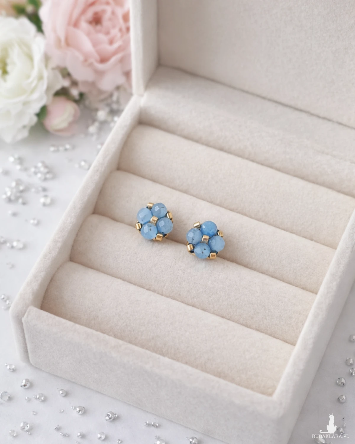 Delikatne sztyfty z akwamarynu zachwycają subtelną, błękitną barwą i minimalistyczną formą. Ich niewielki rozmiar sprawia, że są dyskretne, a jednocześnie eleganckie — doskonałe do codziennego noszenia oraz jako spokojny, harmonijny akcent do bardziej eleganckich stylizacji. Złote detale podkreślają chłodny, świeży charakter kamienia.