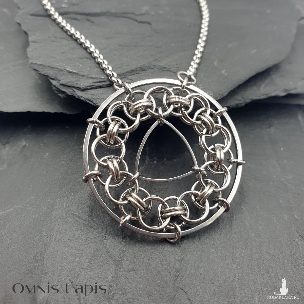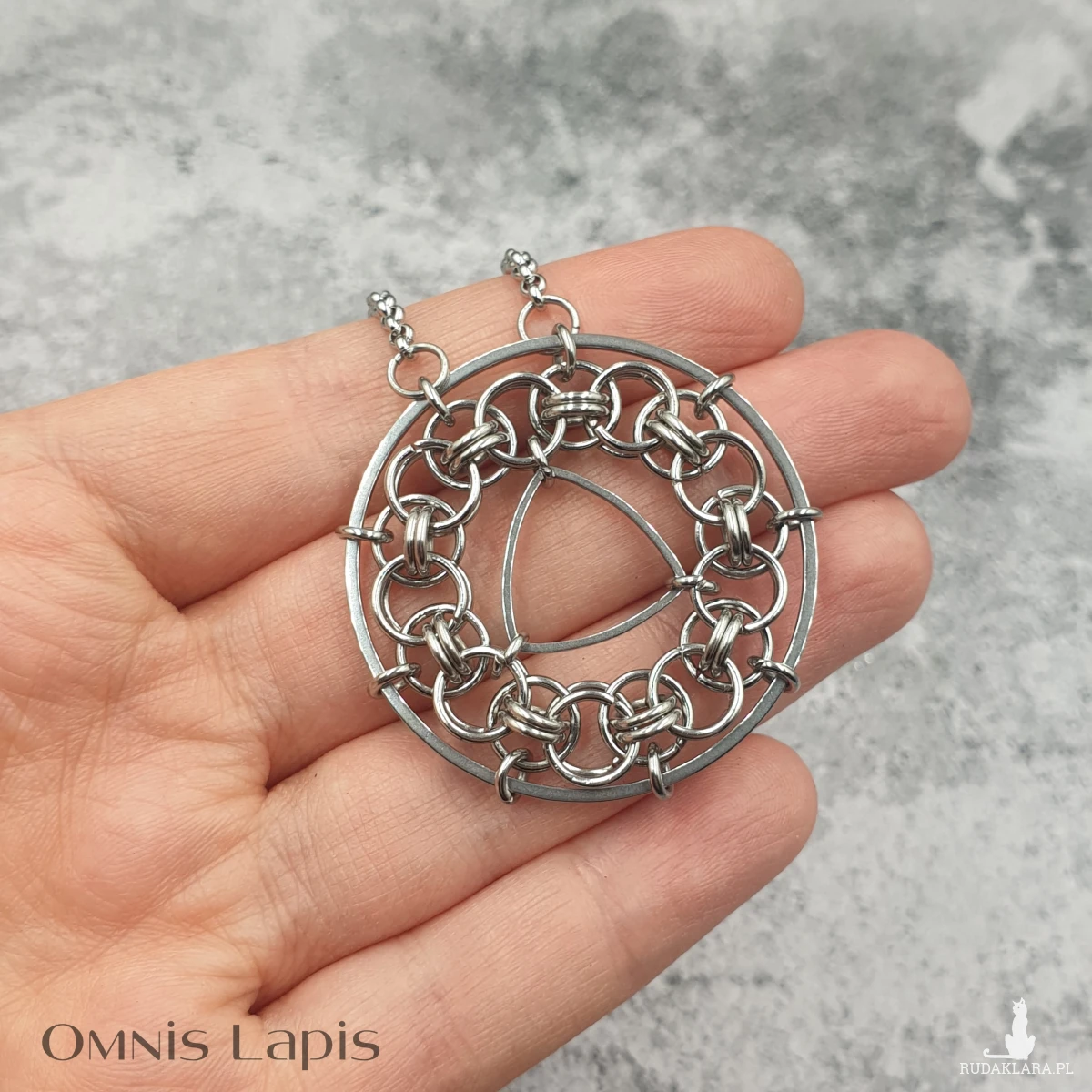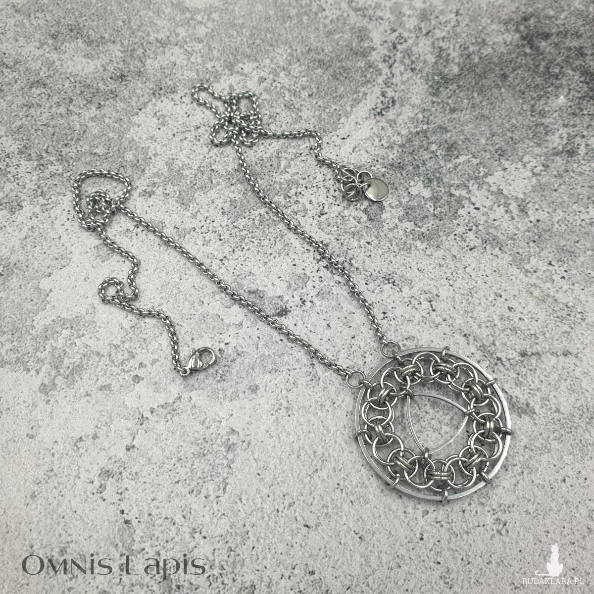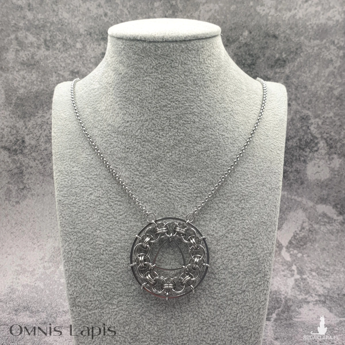 Medalion zawieszony na łańcuszku typu rolo, wykonany w 100% ze stali szlachetnej.