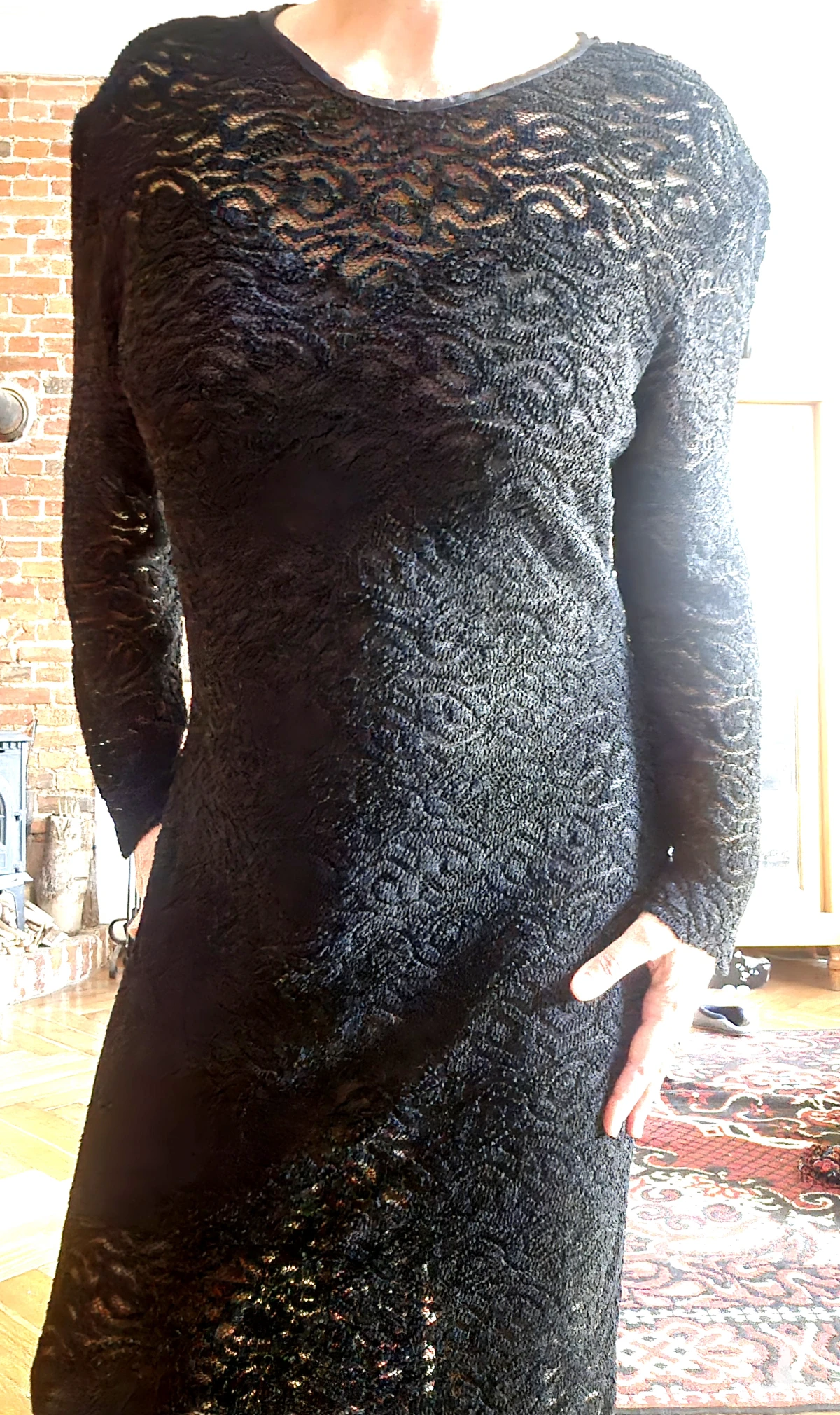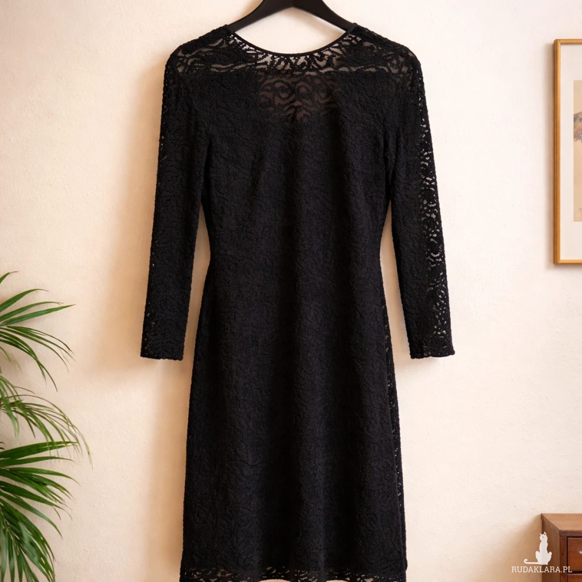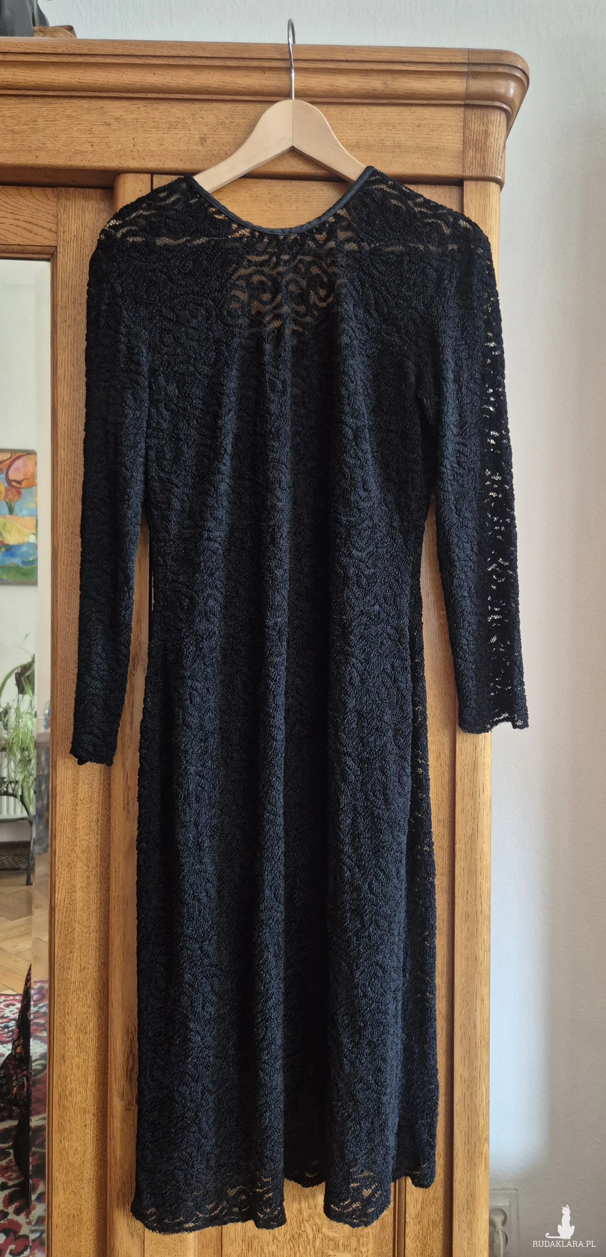Elastyczna miękka rozciągliwa koronka długość sukienki 126 cm odległość pacha pacha 49 cm biodra 54 cm długość rękawa 59 cm polecam bardzo piękna