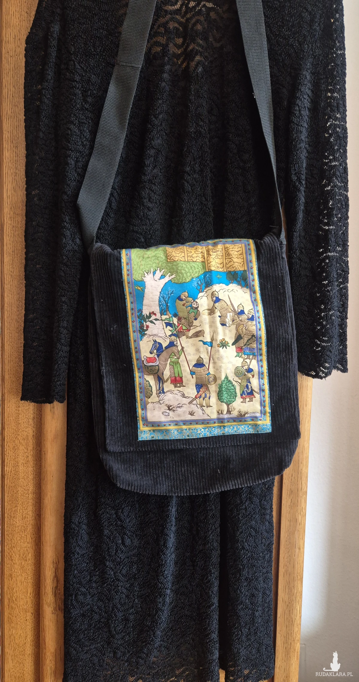 torba artystyczna elegancka w stylu boho, czarna sztruksowa, 41cm na 33cm, długość rączek 120cm, polecam pojedyncza sztuka, polecam