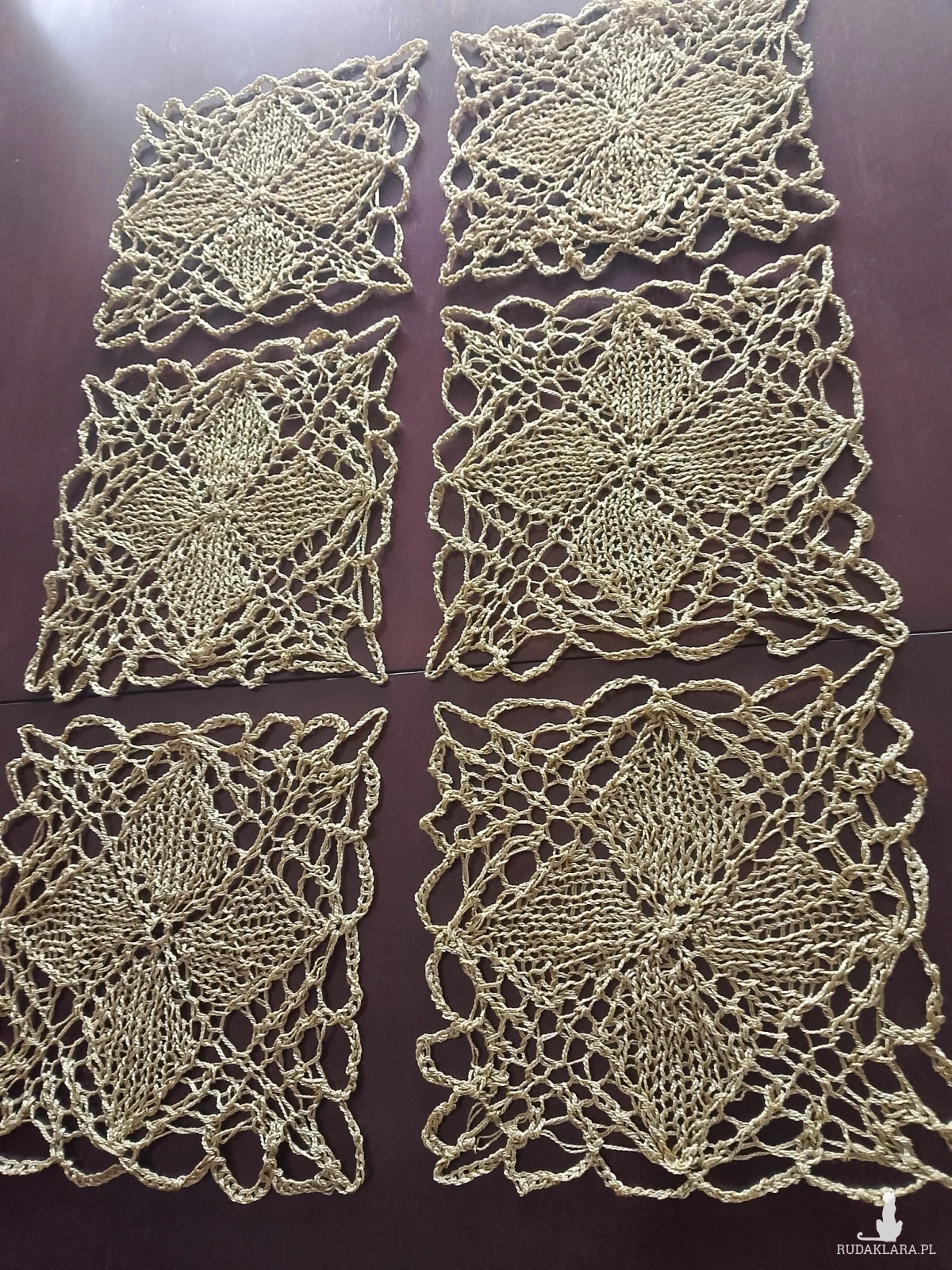 Komplet 6 szt serwetek podkładek wykonanych ręcznie na drutach w kolorze