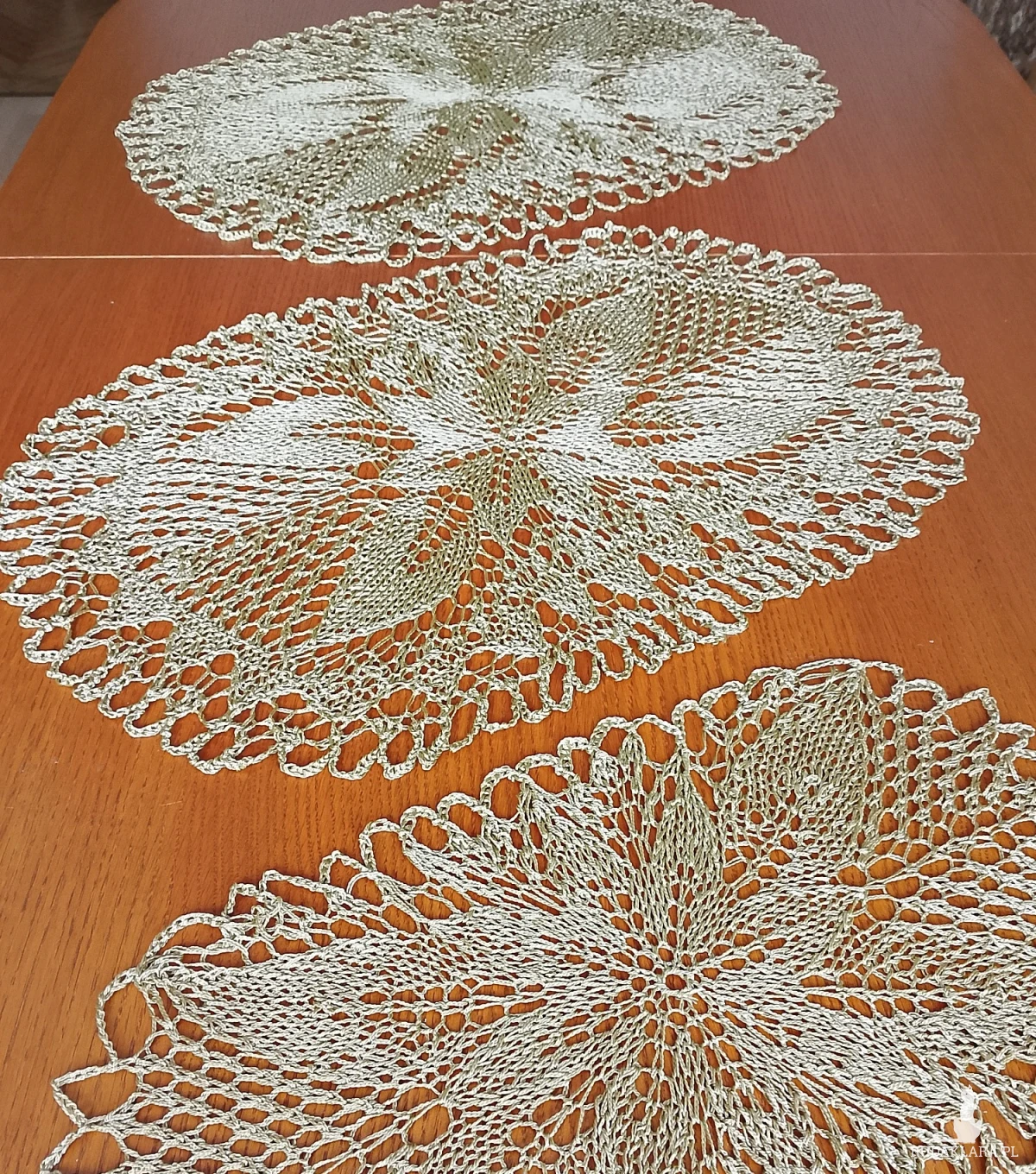Komplet 3 szt owalnych serwetek wykonanych ręcznie na drutach w kolorze