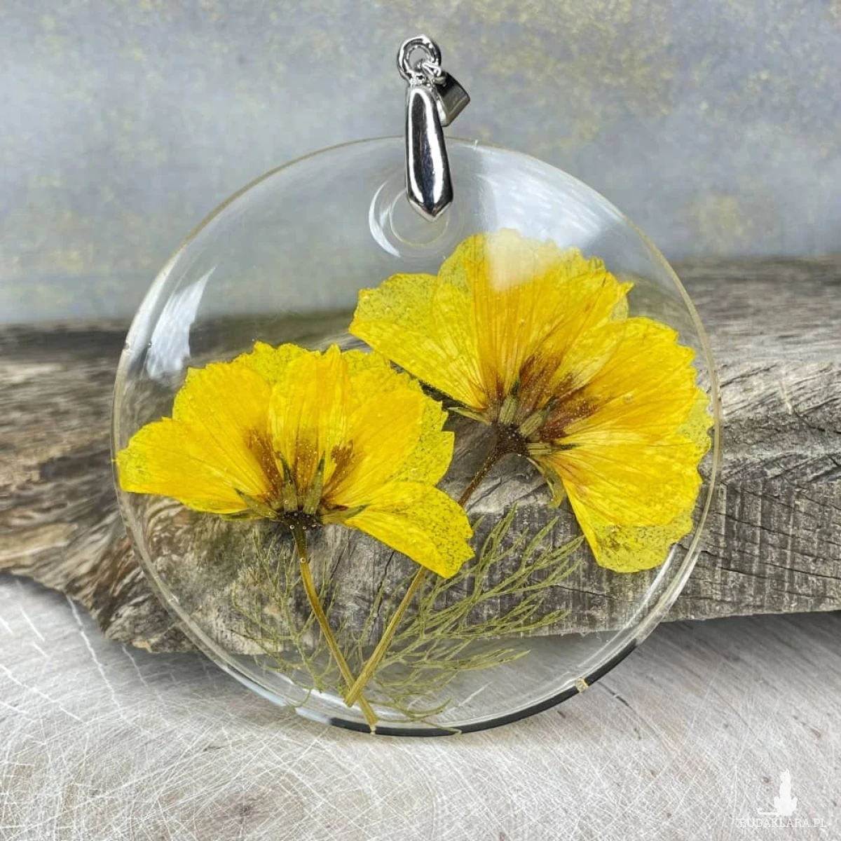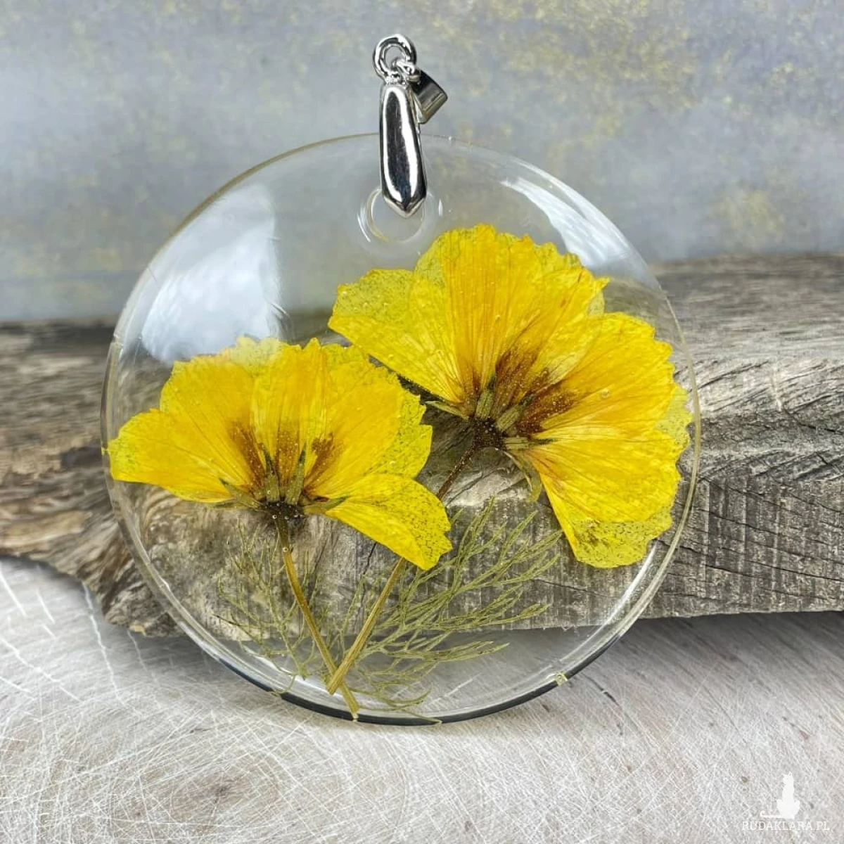 - Materiał: stal chirurgiczna (zawieszka), żywica, rośliny