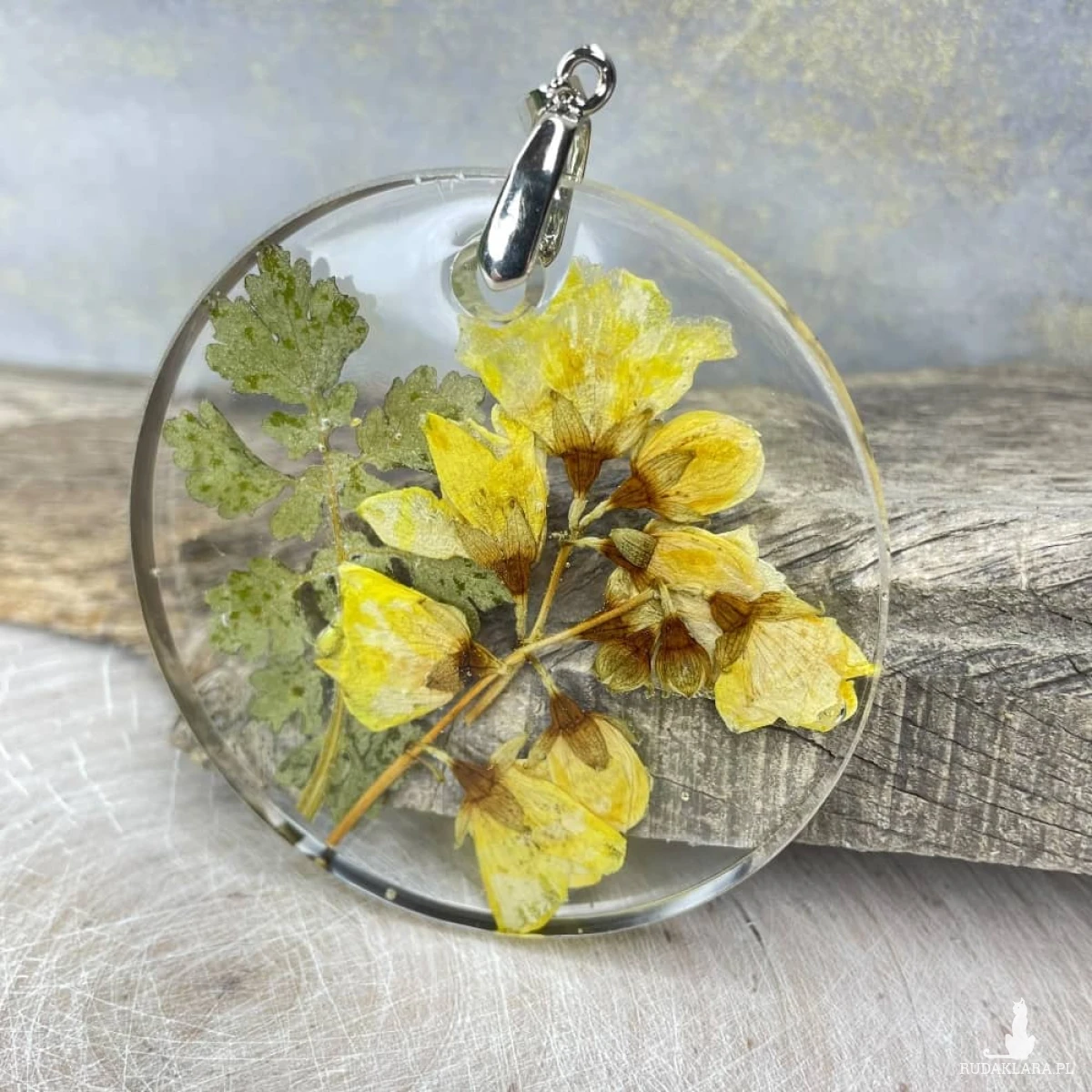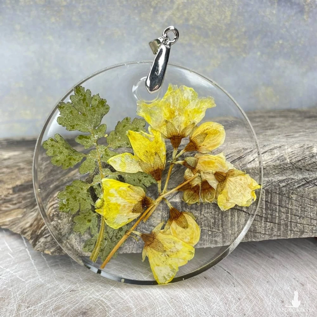 - Materiał: stal chirurgiczna (zawieszka), żywica, rośliny