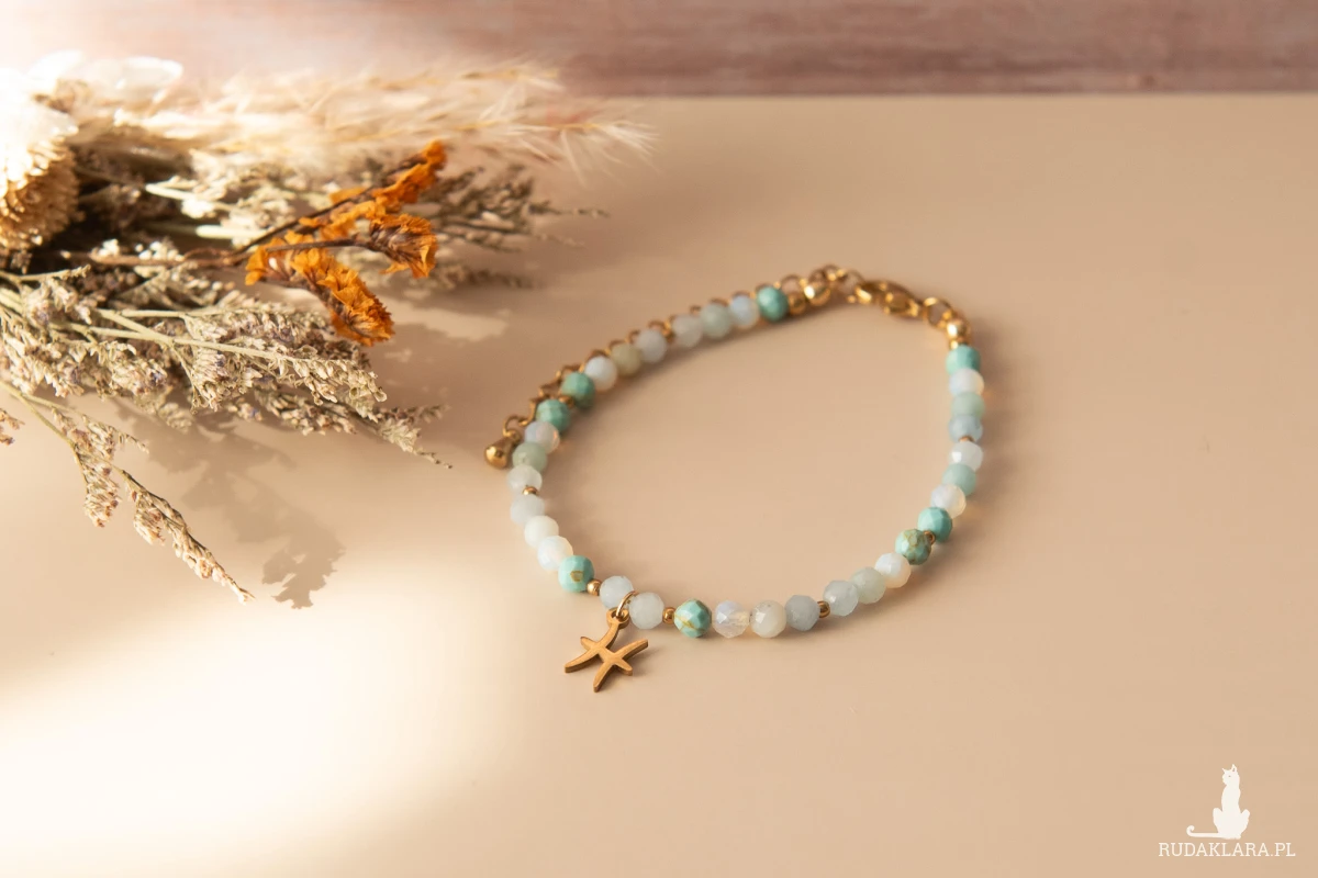 Bransoletka z kolekcji ZODIAC dla Ryb ♓️ z kamieni o wielkości ok. 4 mm, z zawieszką i elementami ze stali nierdzewnej. Dostępna do wyboru w kolorystyce złotej lub srebrnej.