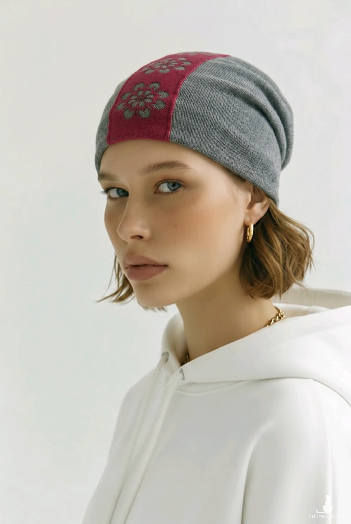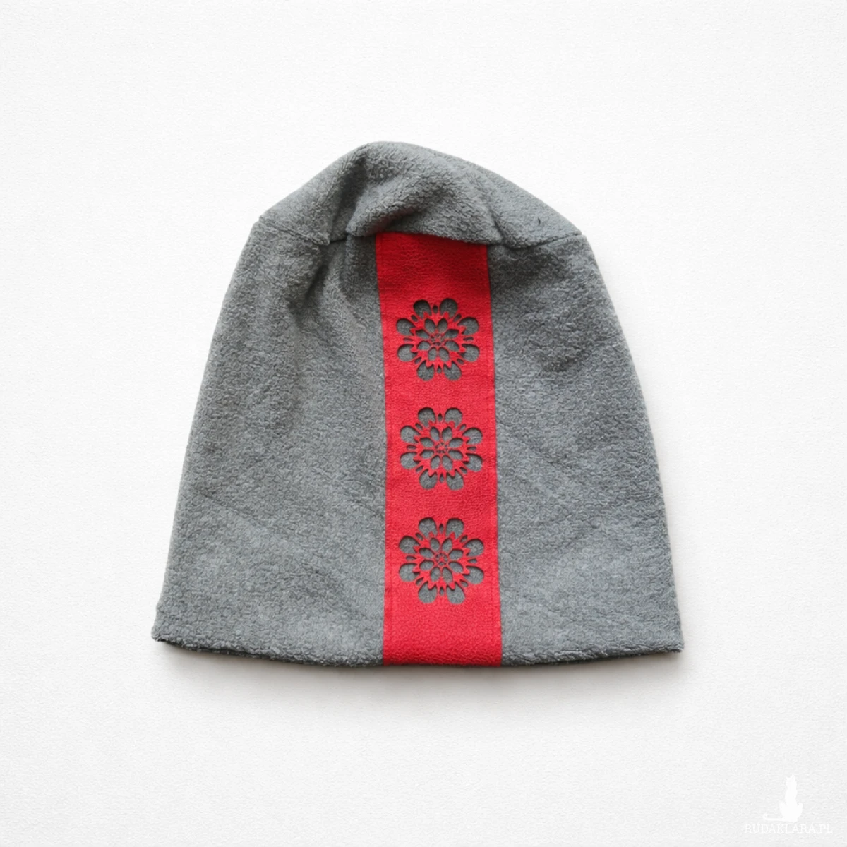 Czapka szara z czerwoną aplikacją , idealna na nadmorski wiatr, rozmiar uniwersalny na podszewce polecam Box D1