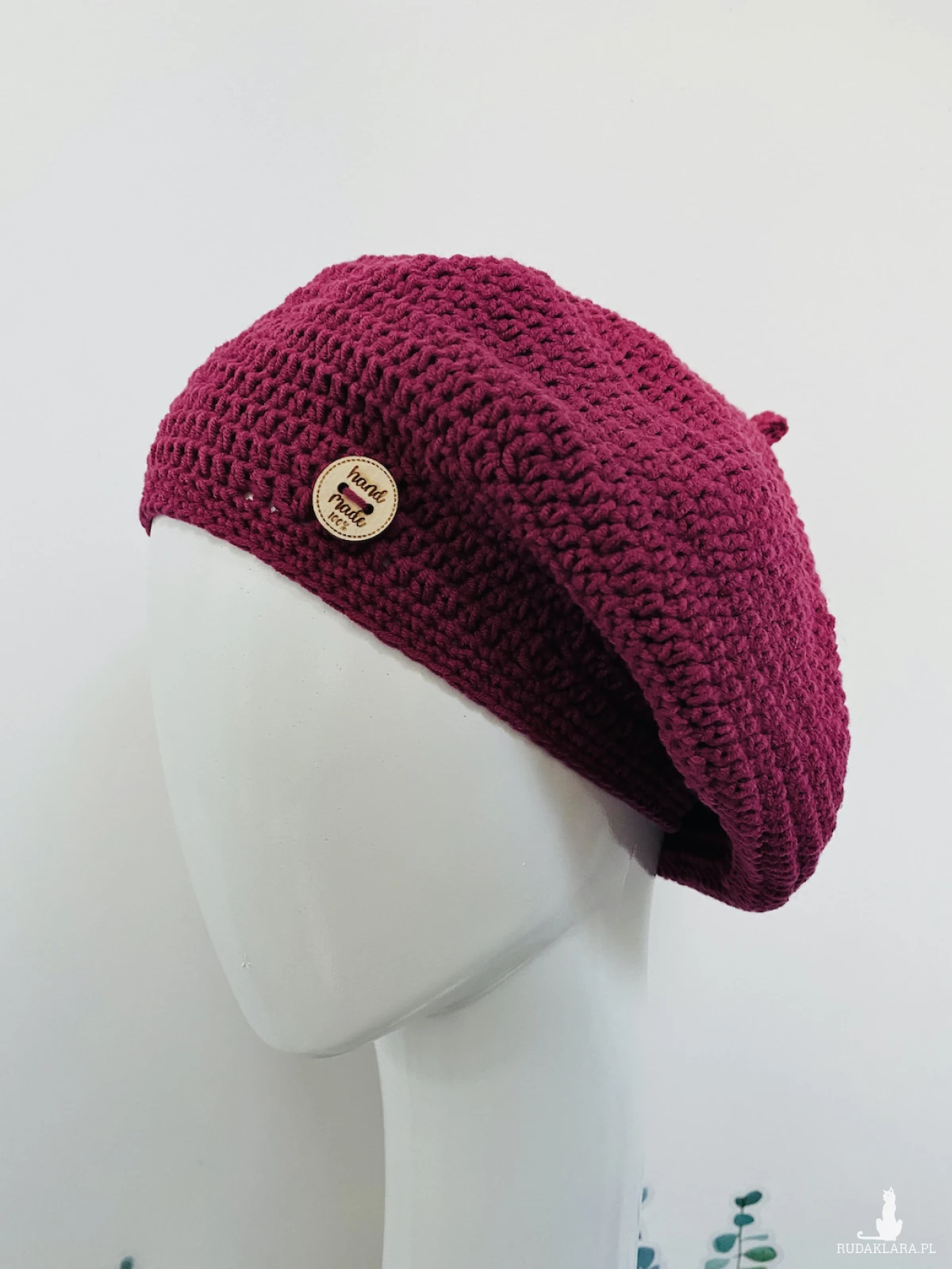 Aby beret zawsze wyglądał jak nowy zalecam pranie go ręczne. Dzięki temu zachowa swoje właściwości przez długi czas, nie tracąc na jakości ani kolorze. Materiał bawełniano-akrylowy, z którego jest wykonany, nie wymaga skomplikowanej pielęgnacji, beret jest łatwy w utrzymaniu czystości.