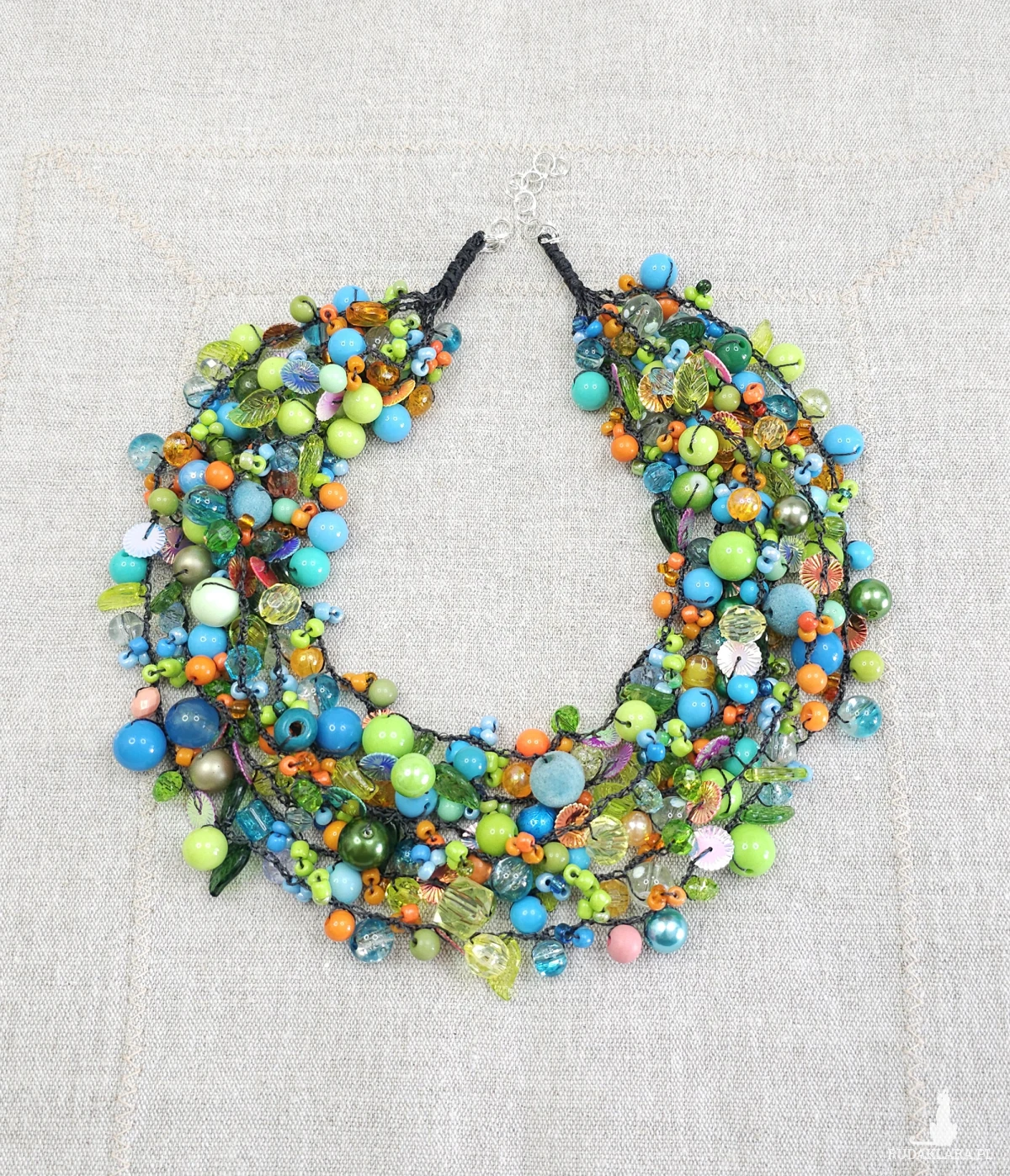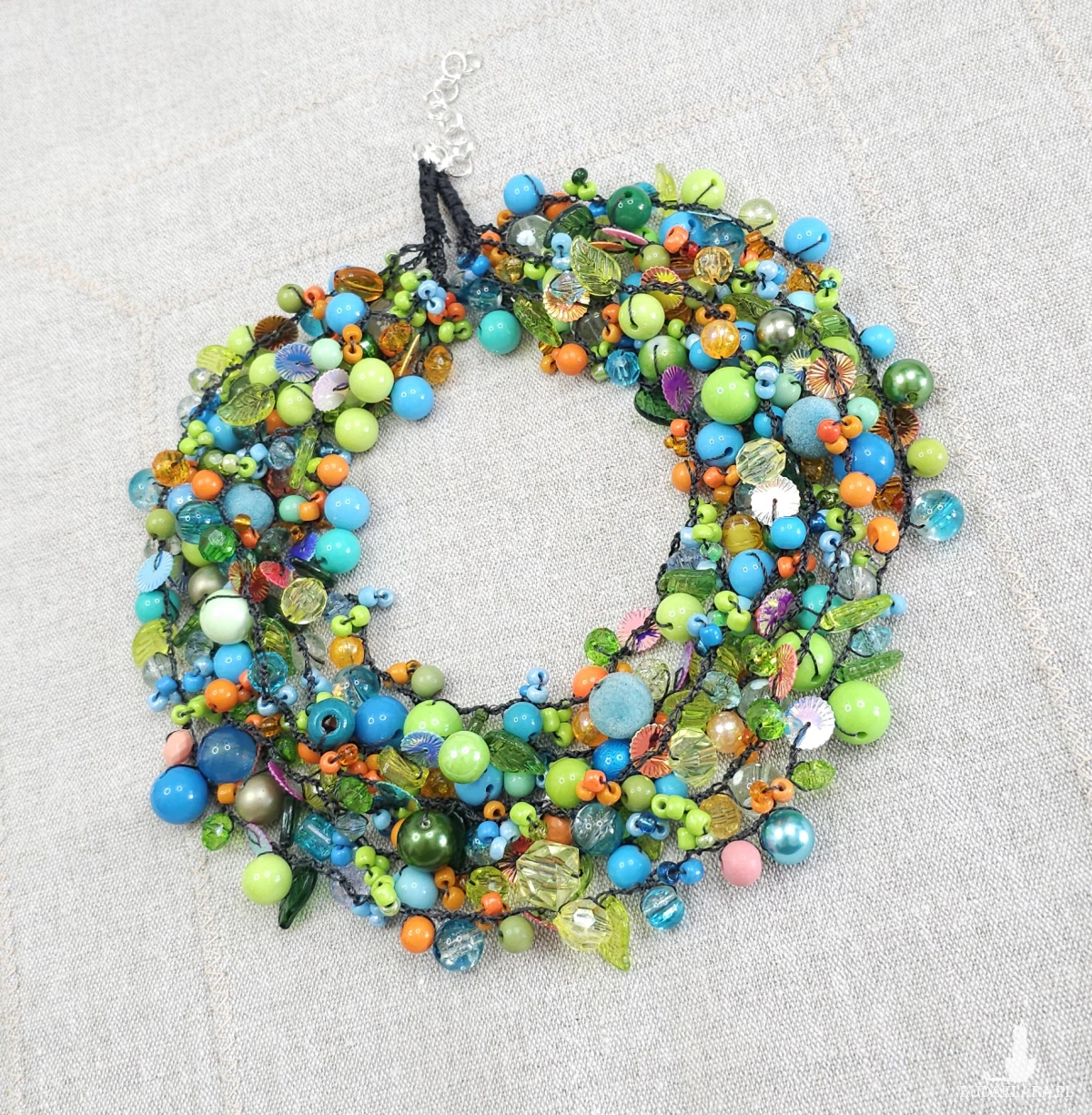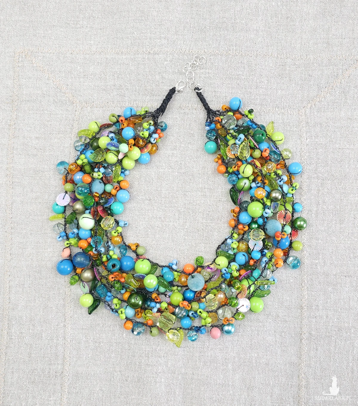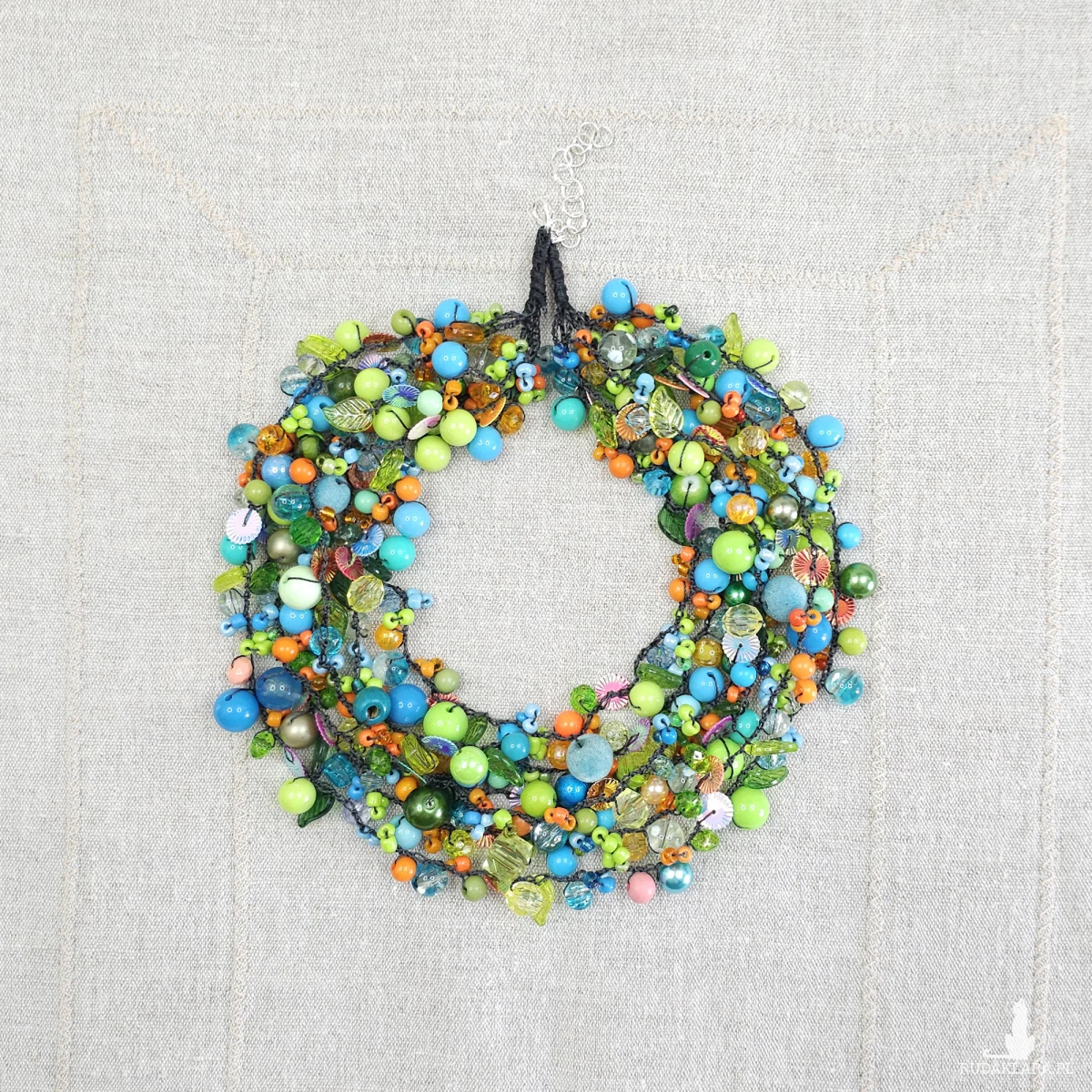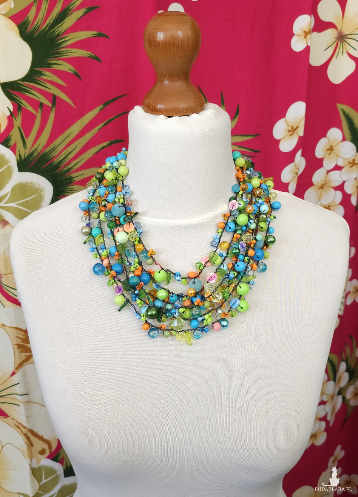 7069 bogaty, lekki naszyjnik, kolia; zielony, niebieski, pomarańczowy naszyjnik