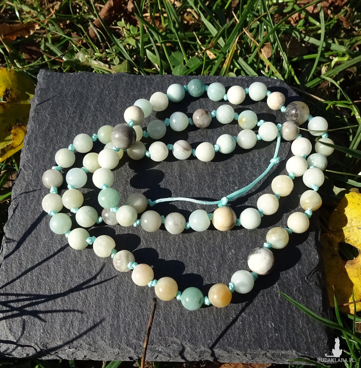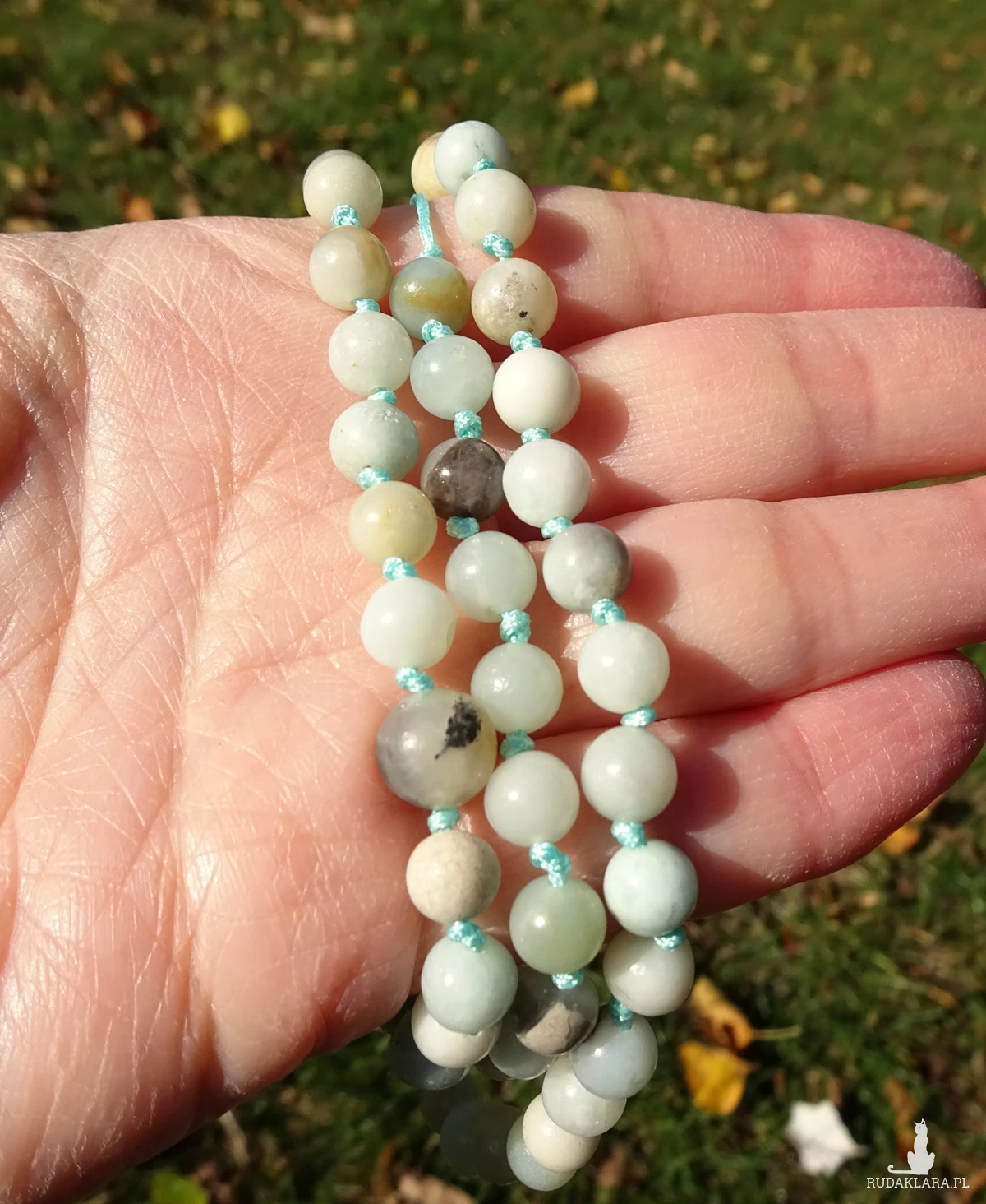 Naszyjnik supełkowany z naturalnych kamieni amazonitu