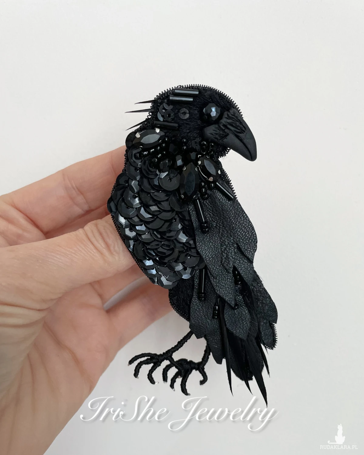 Autorska Broszka „Kruk” – unikatowa biżuteria artystyczna z głęboką symboliką. Nowa.