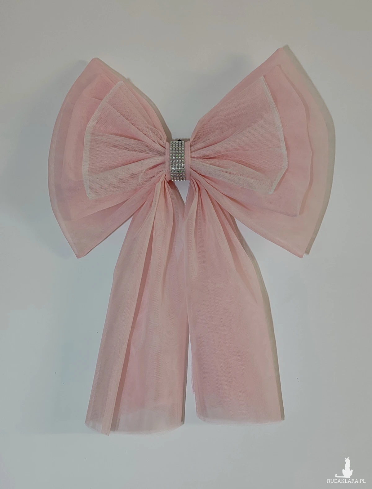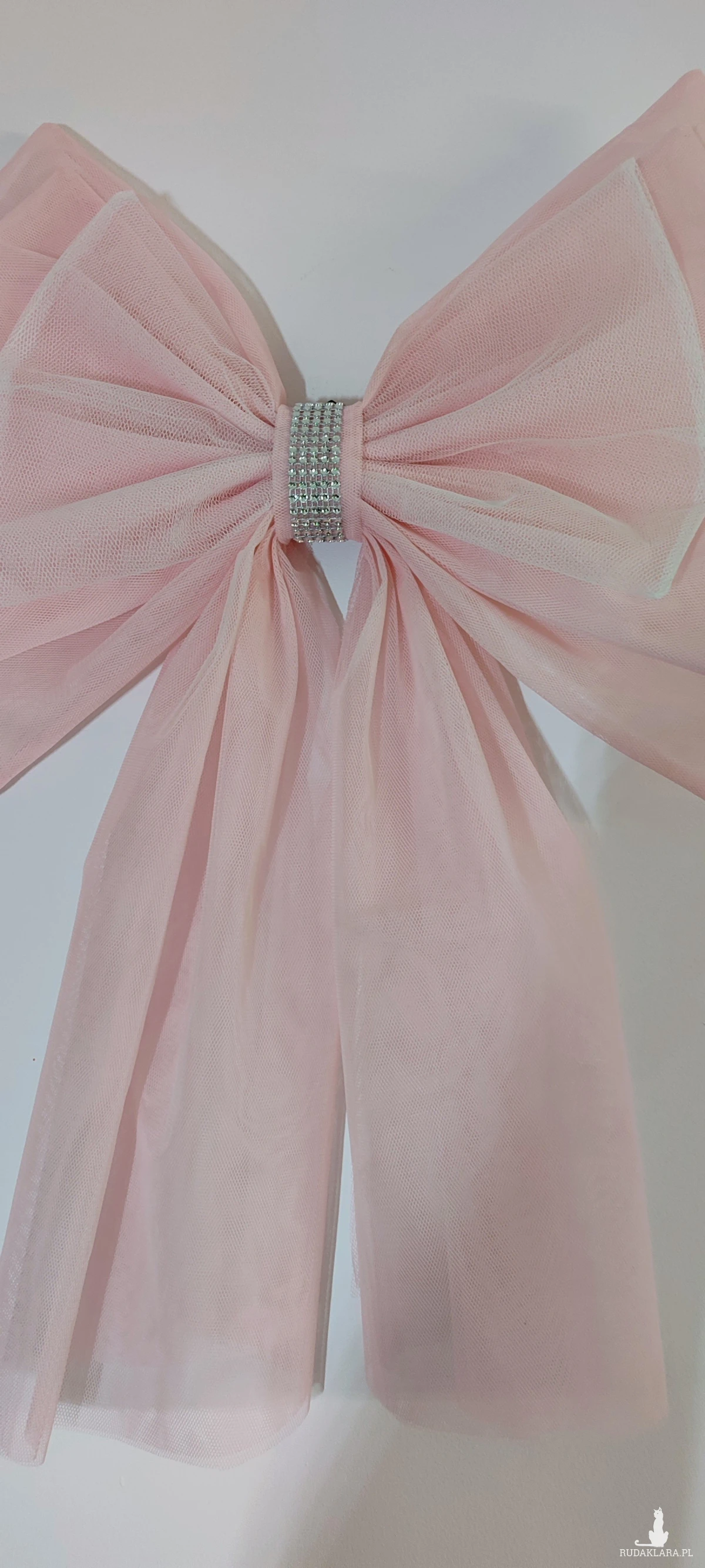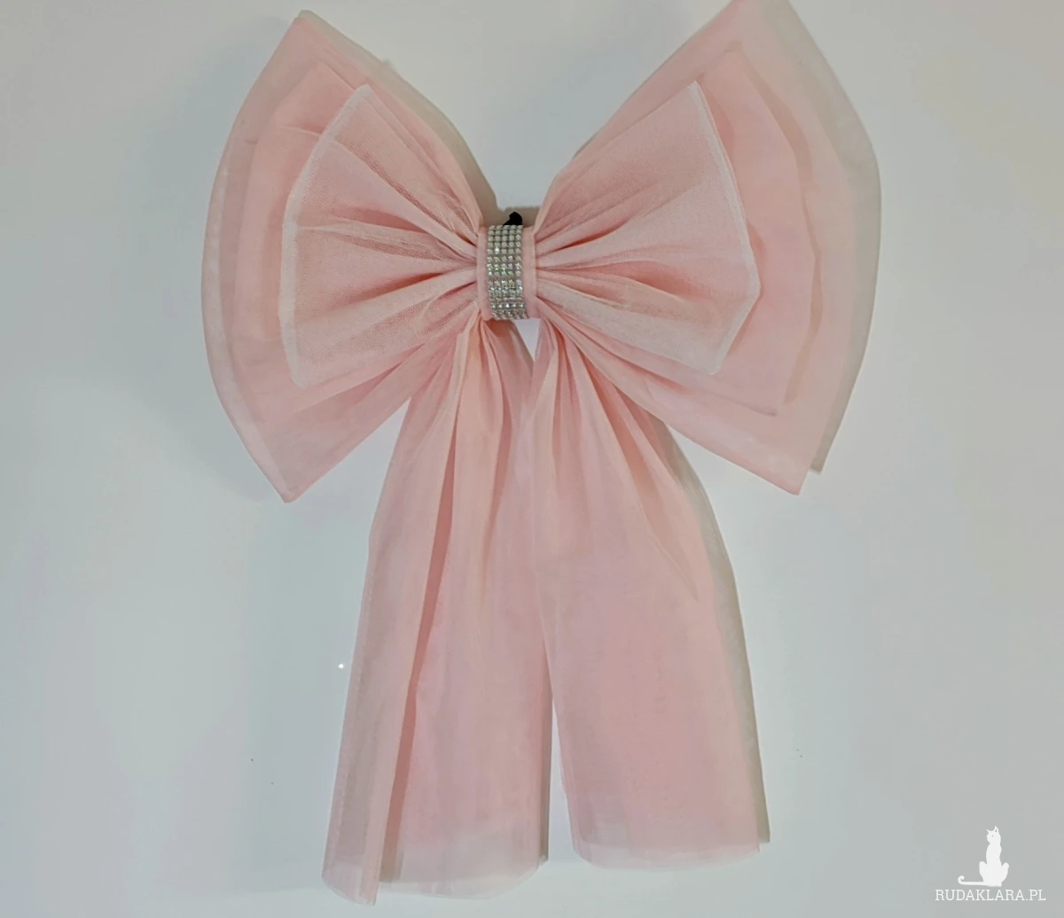 Efektowna, duża kokarda dekoracyjna XL wykonana z tiulu w subtelnym, jasnoróżowym odcieniu 🌸