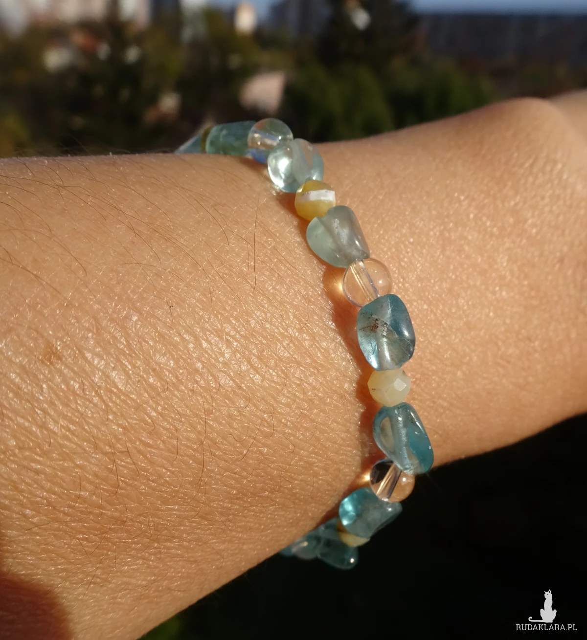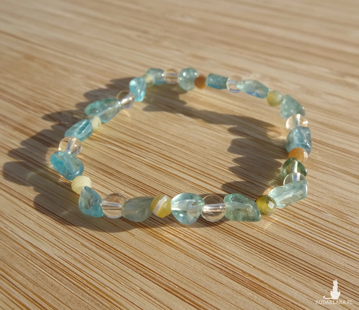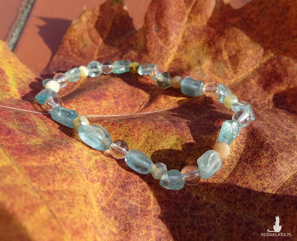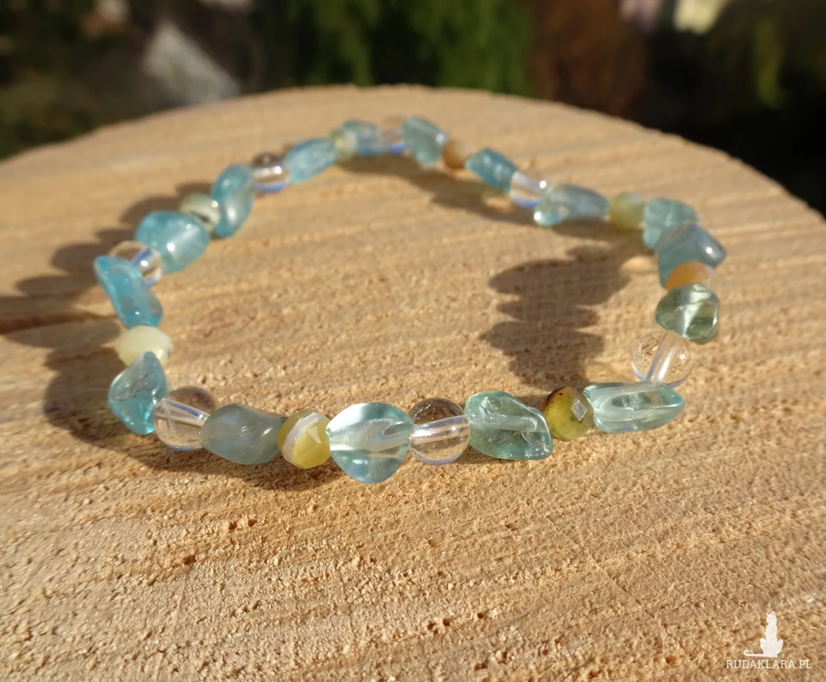 Bransoletka z apatytu, opalu żółtego i cytrynu, na elastycznej i wytrzymałej gumce