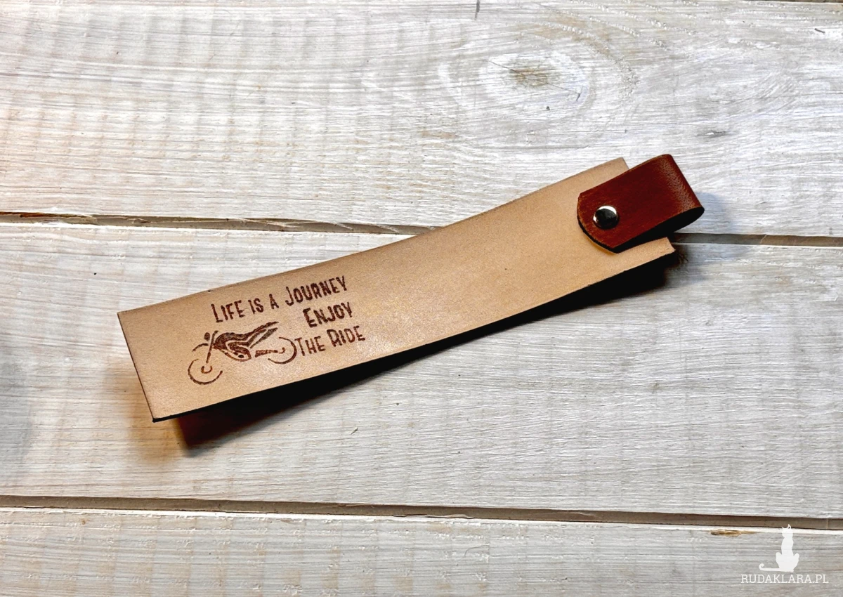 Ręcznie wykonana skórzana zakładka do książek dla miłośników motocyklowych przygód