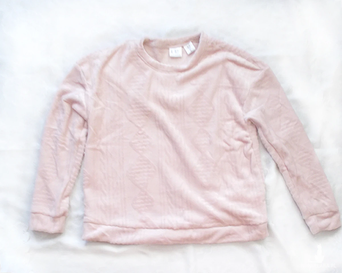 Nowa, ciepła, pastelowa bluza z tkaniny typu "misiu", tłoczony wzór geometryczny z przodu i tyłu. Rozmiar L, długi rękaw. kolor jasnoróżowy. Marka: "up 2 fashion". Lekka i bardzo miła w dotyku tkanina, skład: 100 % poliester. Wymiary: