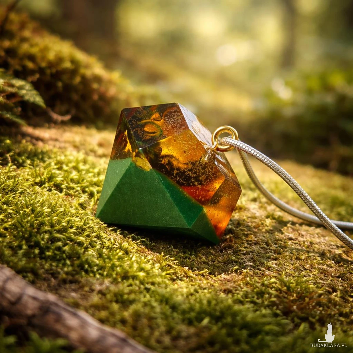 Odkryj wyjątkowy wisiorek handmade, w którym zamknęłam prawdziwe fragmenty lasu. Mech, kora i naturalne elementy tworzą niepowtarzalną kompozycję zatopioną w krystalicznej żywicy.