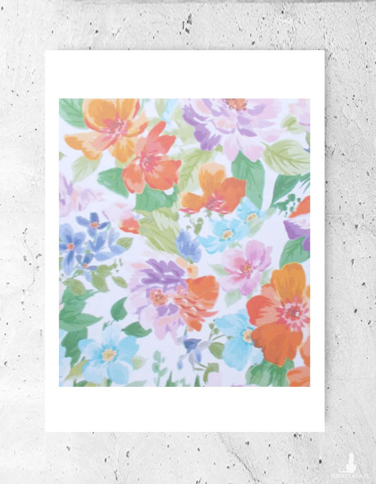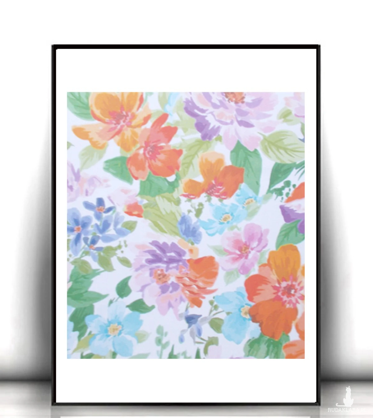 Nowy, kolorowy plakat z kwiatami. Grafika na białym kartoniku w rozmiarze A4. Dekoracja na ścianę do sypialni, salonu, kuchni, jadalni, pokoju dziewczynki lub nastolatki, biura, gabinetu, kawiarni, cukierni, restauracji itp. Poster wystarczy dać do ramki 21x30 cm. Plakat będzie pasował do każdego stylu urządzania wnętrz.