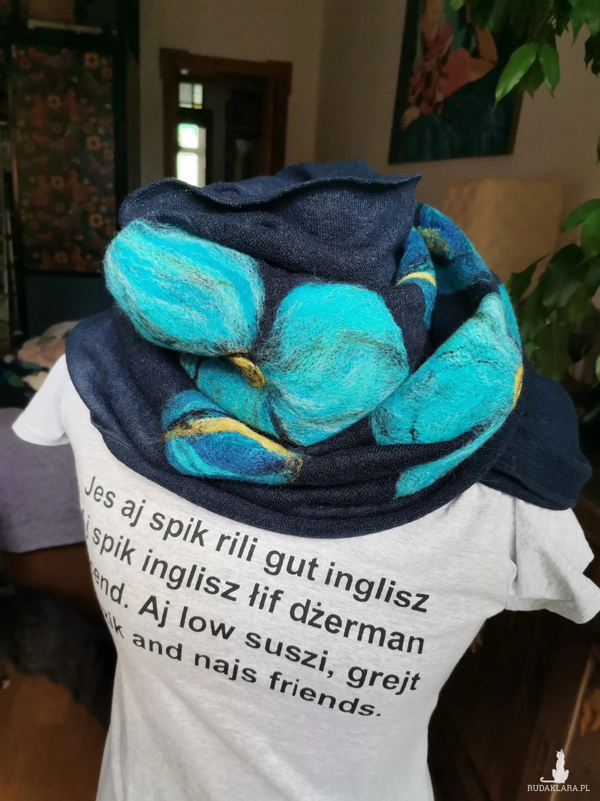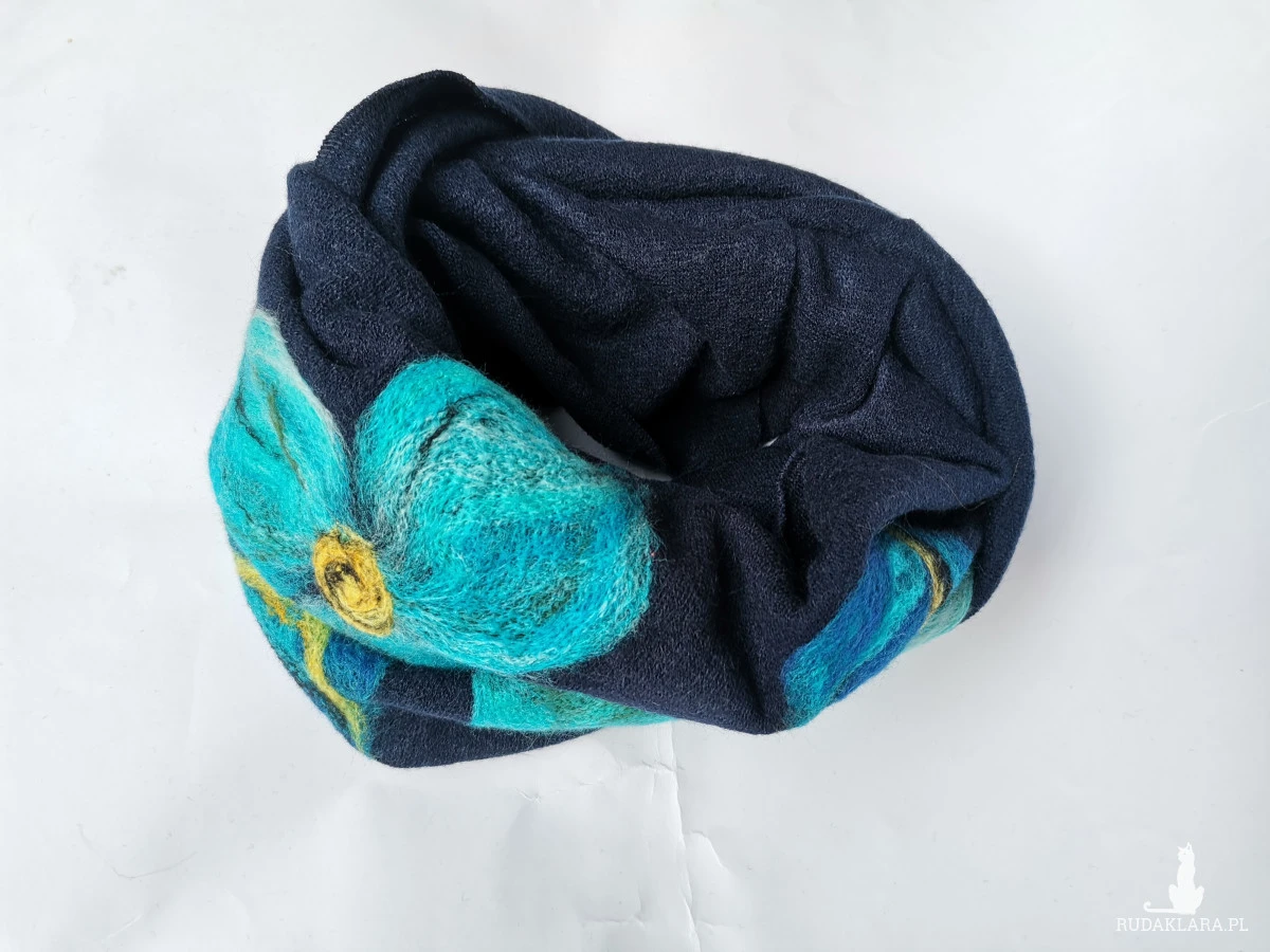 komin wełniany filcowany wełną merynosów wsuwany przez głowę na podszewce, wymiary 38cm,na 41cm, bardzo ciepły i miły, polecam-wir-czas oczekiwania 1,5 tyg