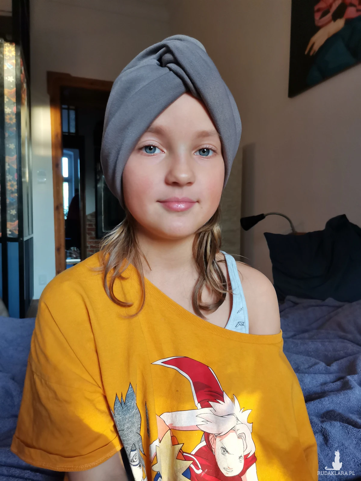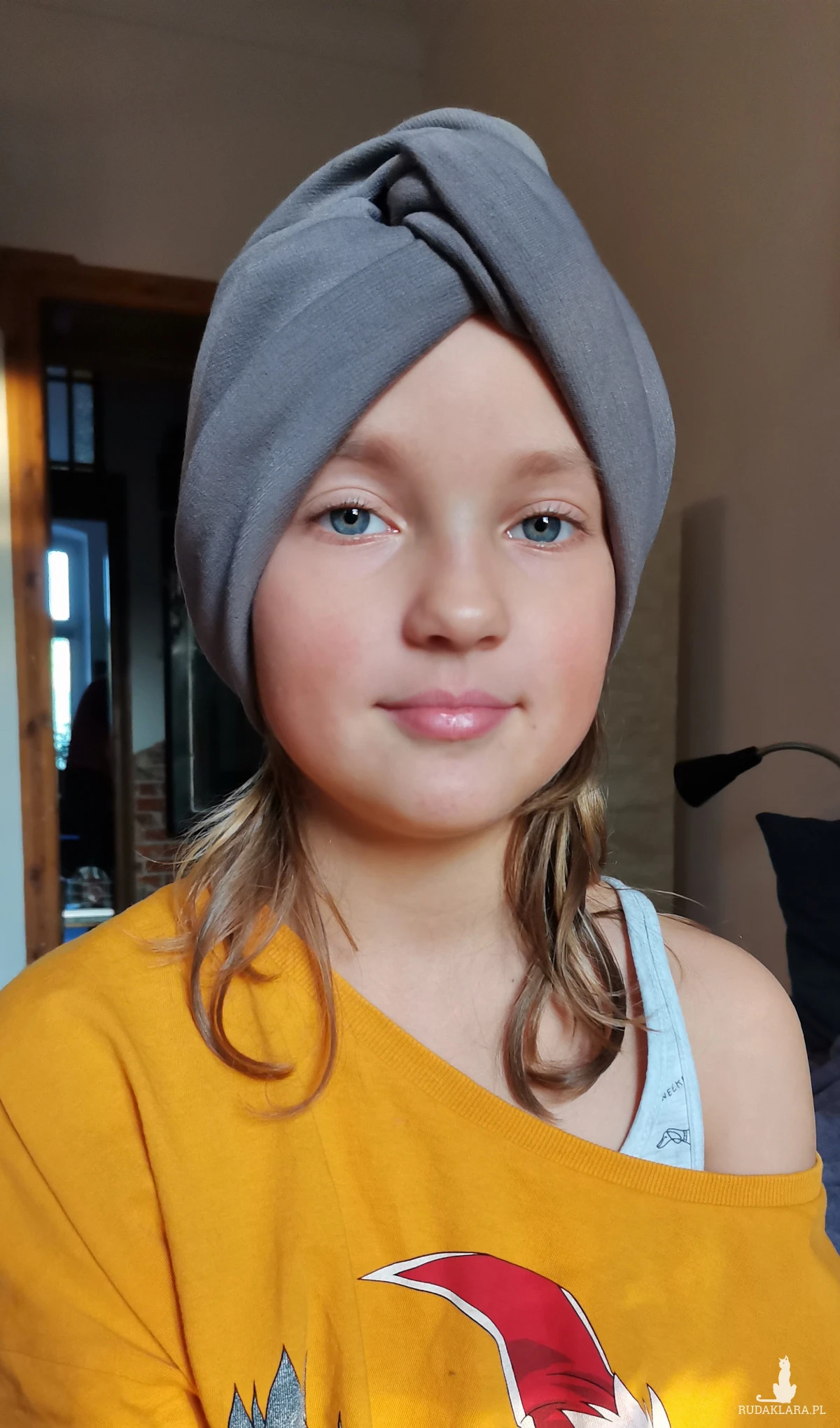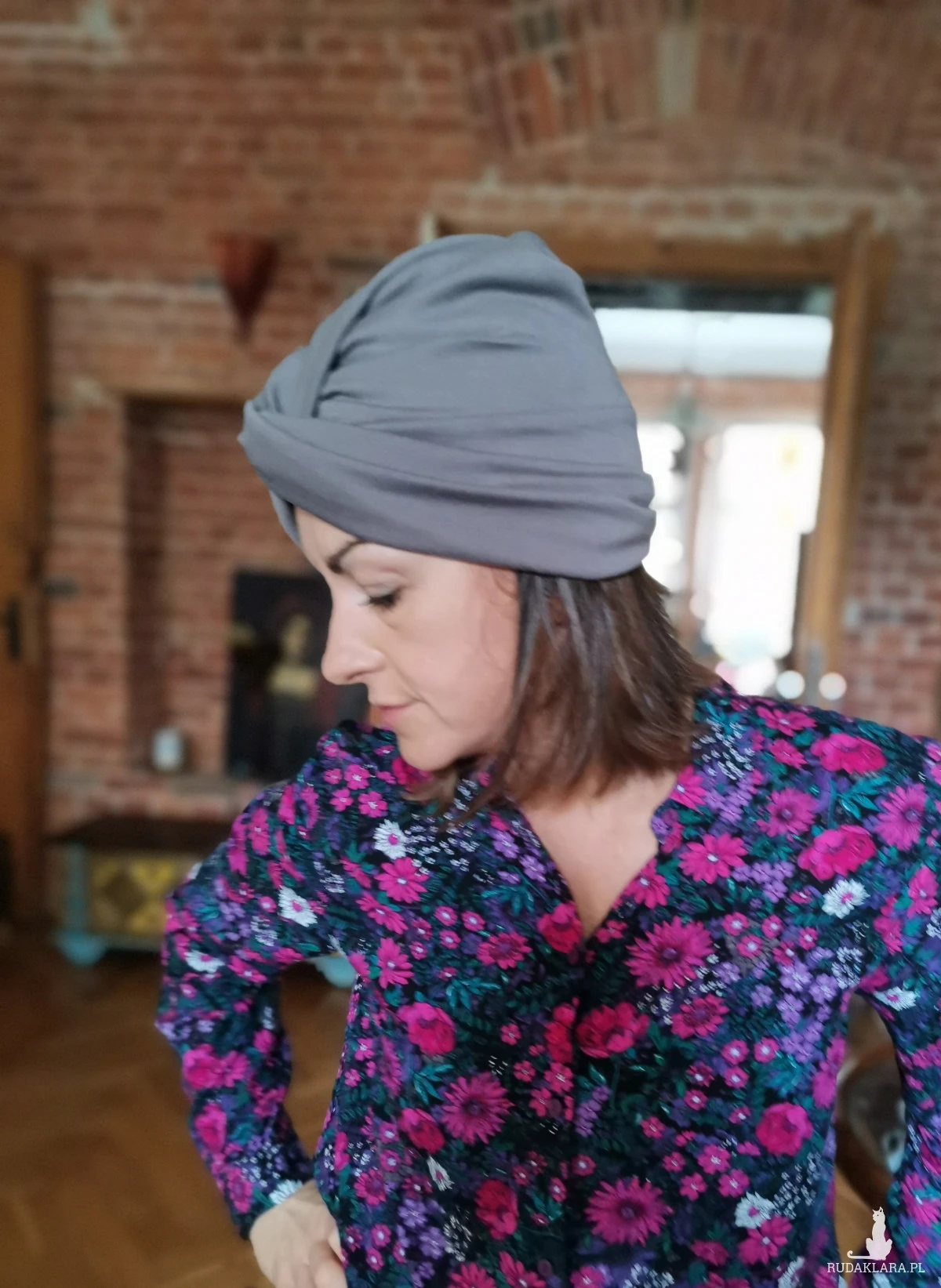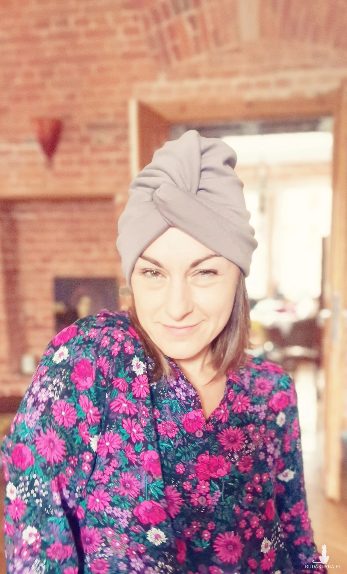 Turban codzienny bez etno rozmiar uniwersalny, nie uciska głowy, fajnie się układa, jest miękki dzianinowy dobrze się prezentuje box r1