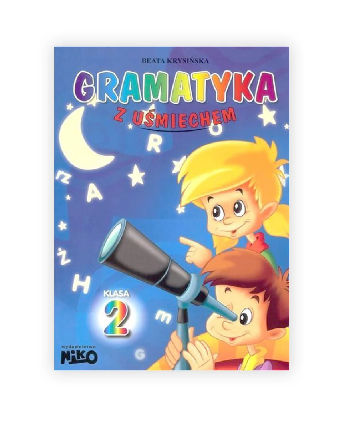 Książka dla dzieci pt. "Gramatyka z uśmiechem klasa 2 ", autorka: Beata Krysińska, kolorowe 56 strony z ćwiczeniami.