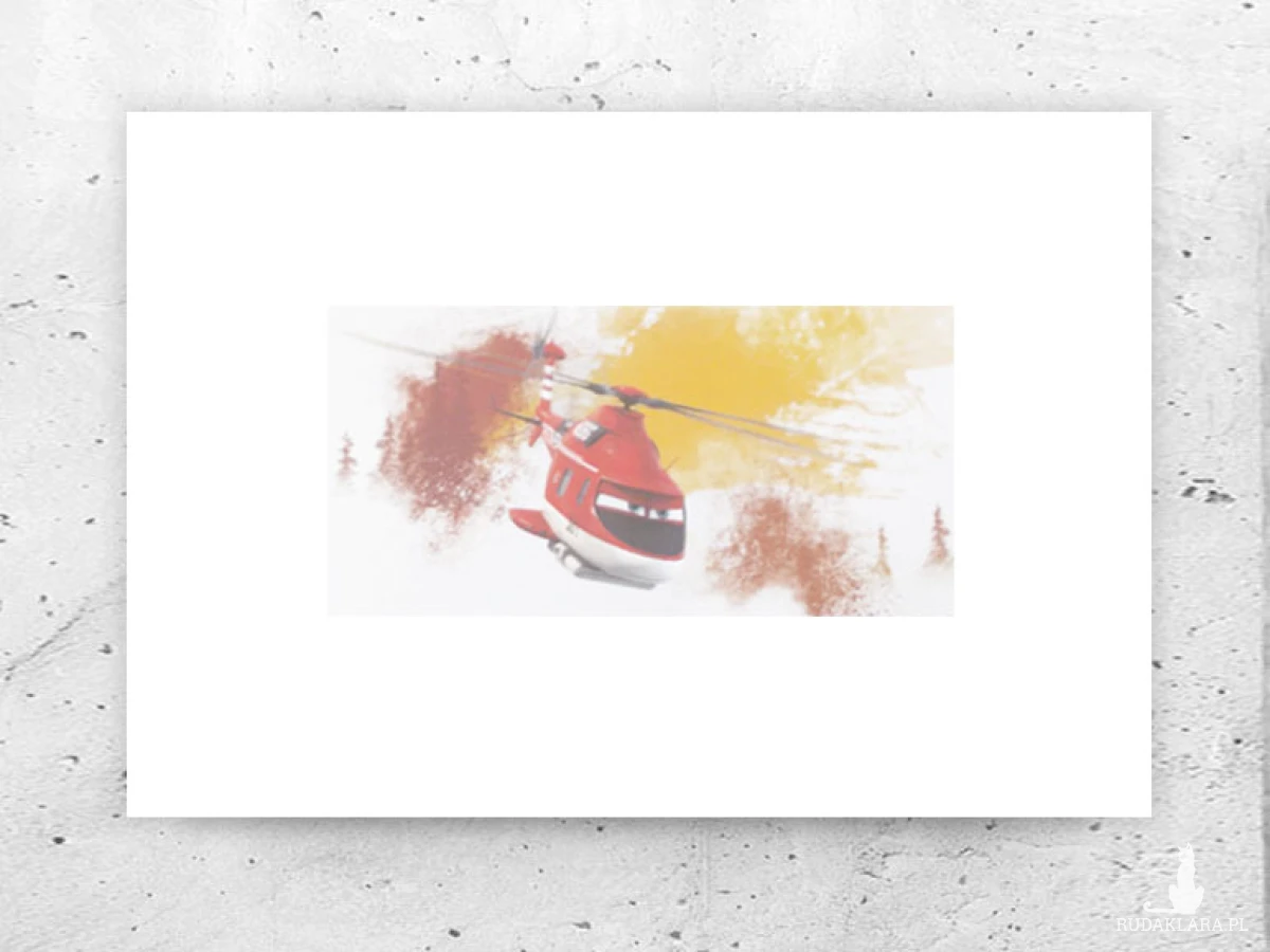 Nowy plakat z animowanej bajki "Samoloty". Kolorowy obrazek na białym kartoniku A4. Dekoracja na ścianę do dziecięcego pokoju, kuchni, jadalni, żłobka, przedszkola, bawialni, klubu malucha itp. Poster wystarczy dać do ramki w rozmiarze 21 x 30 cm..