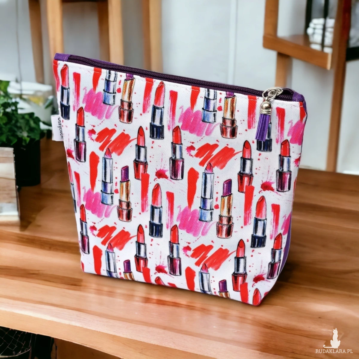 Bardzo kobieca kosmetyczka uszyta z wodoodpornej tkaniny i wodoodpornej podszewki.