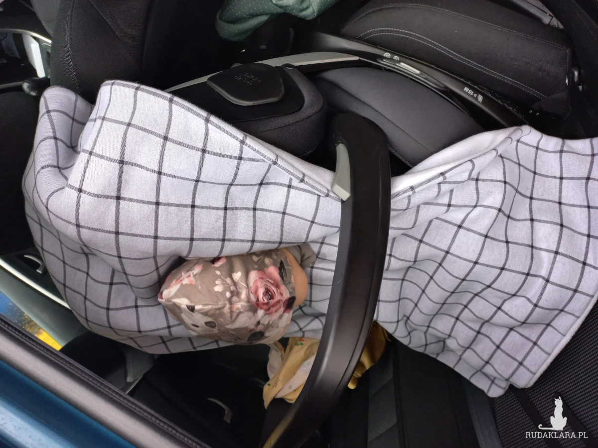 Pasy zapinane są pod ponczem, co sprawia, że dobrze przylegają do ciała, a tył poncza zarzucamy na fotelik ( nie może być pod plecami dziecka). Moja prywatna modelka prezentuje użycie poncza na drugim zdjęciu ;)