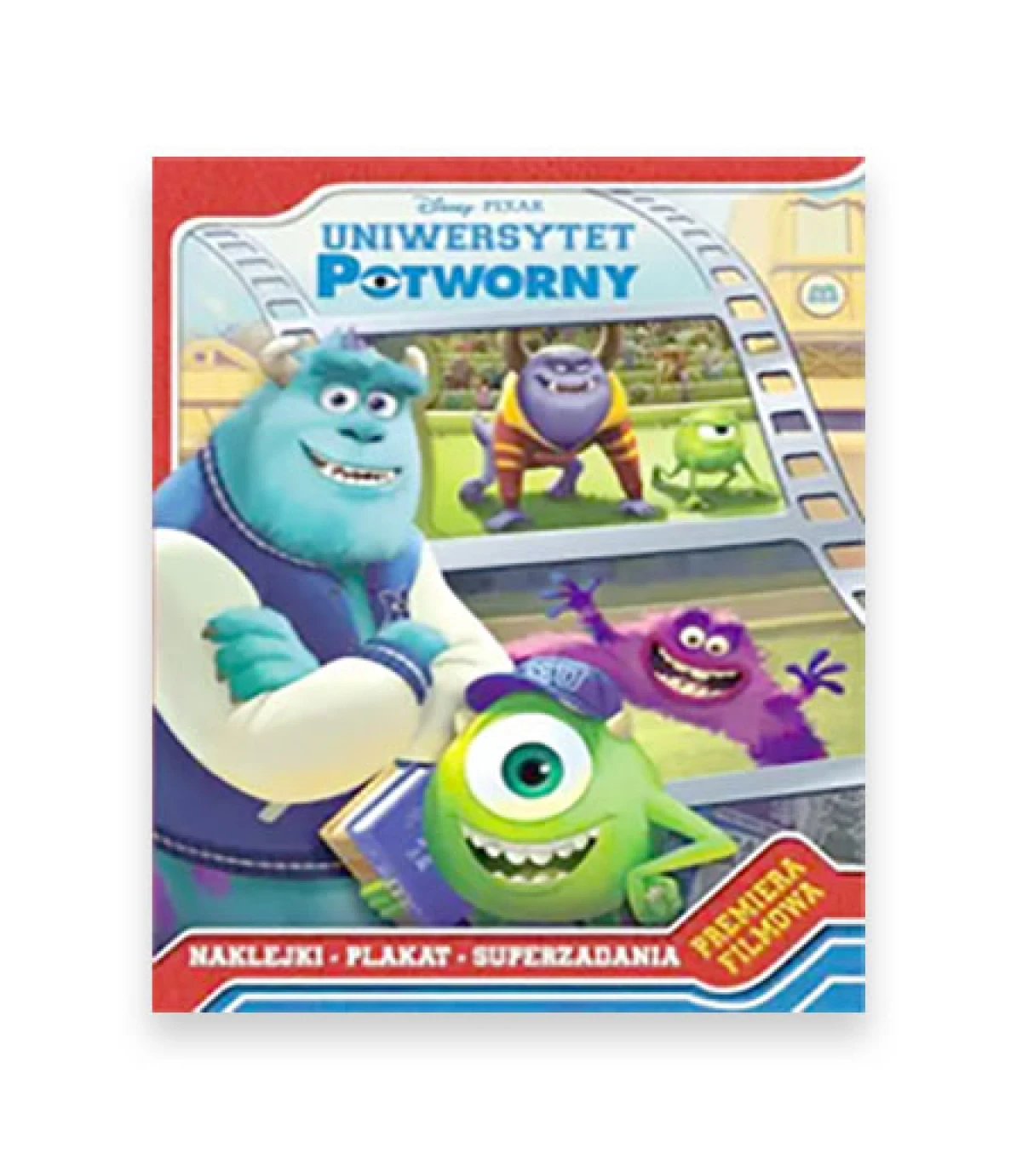 Nowa książka dla dzieci pt. "Disney, Pixar - Uniwersytet potworny super zadania naklejki plakat", kolorowe 32 strony, zawiera łamigłówki, naklejki, plakat.