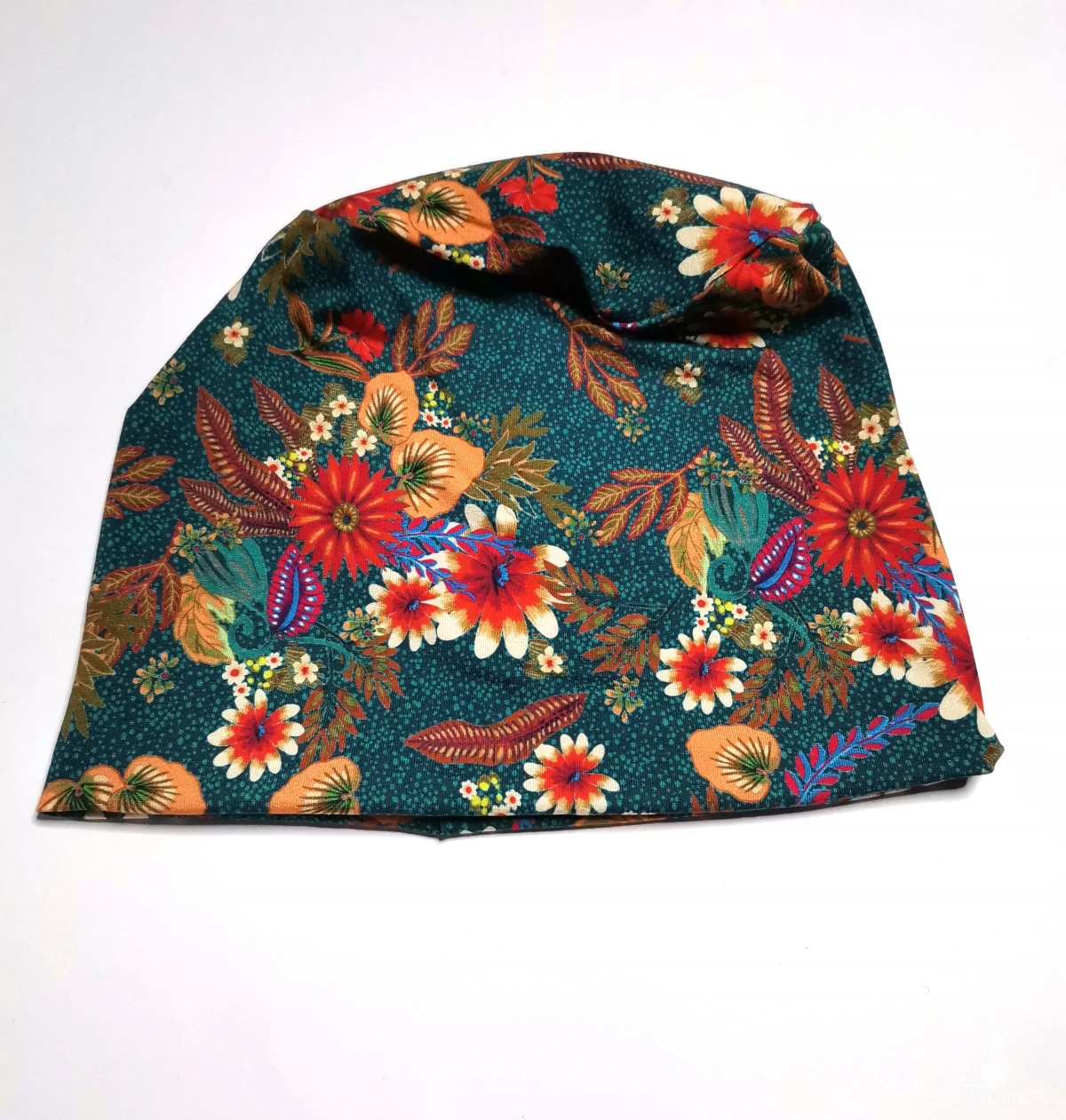 Czapka dzianinowa w kwiaty na podszewce dobra na codzienne noszenie polecam box waliz